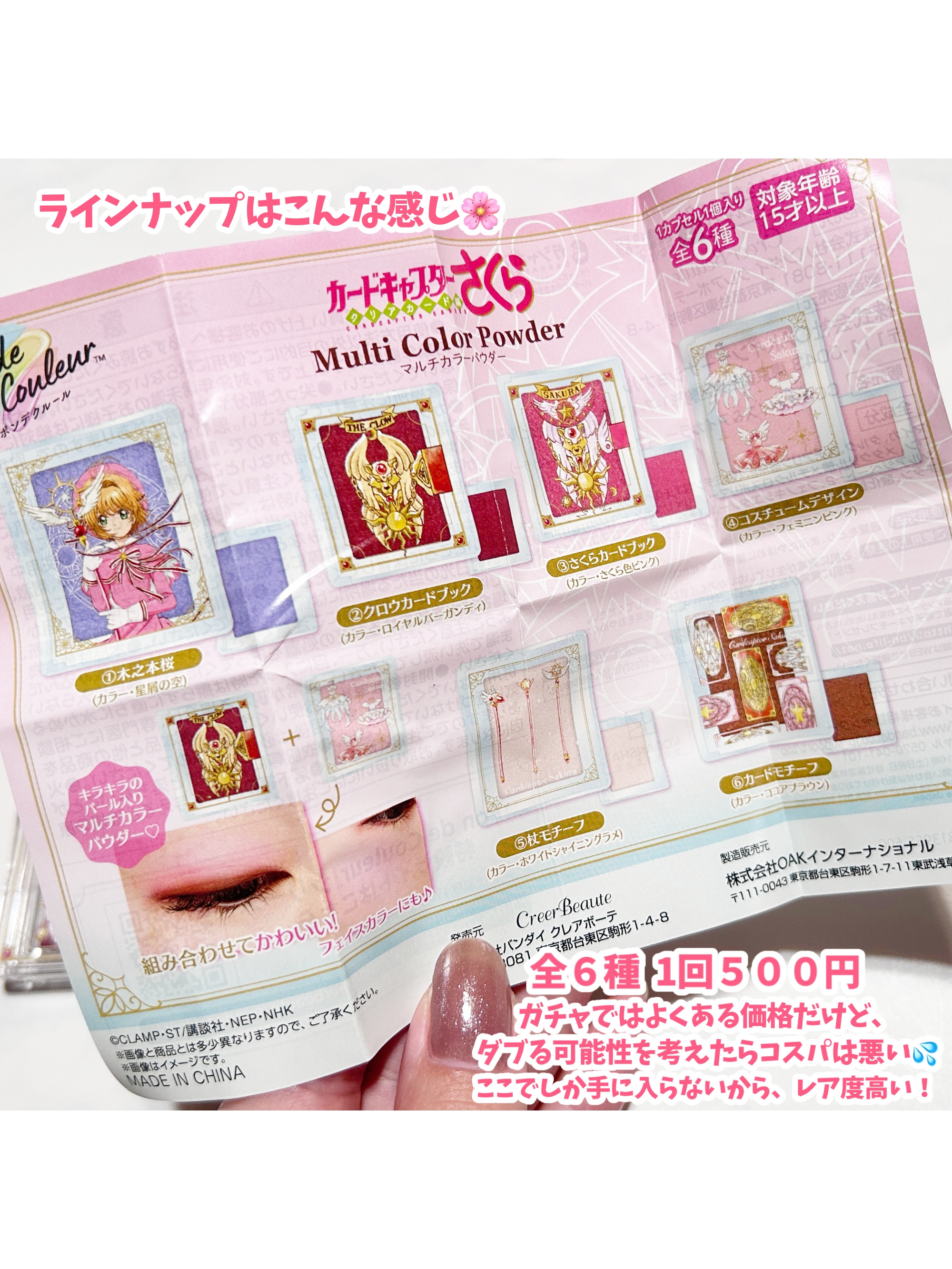 ガチャガチャコスメカードキャプターさくらとアイカツのコスメガチャが出てたので、やってみました。どちらかというとアイカツの方が色が好みだったので狙ってたのですが、先に出会ったのはさくらちゃん。1個もできずに終わるのは悲しいなと、1回だけ回しまし...