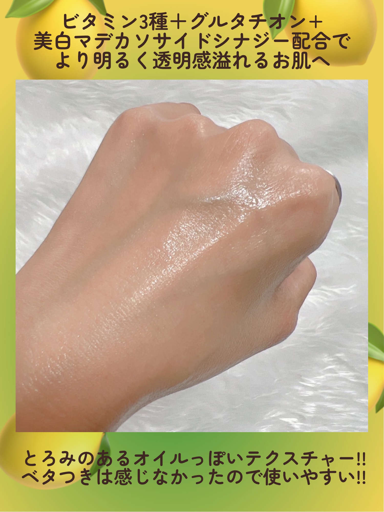 | 少しとろみがあるけど肌に出すとすーっと垂落ちてくるくらいのゆるめのテクスチャーで、のびが良い! | 詳細を見る | |