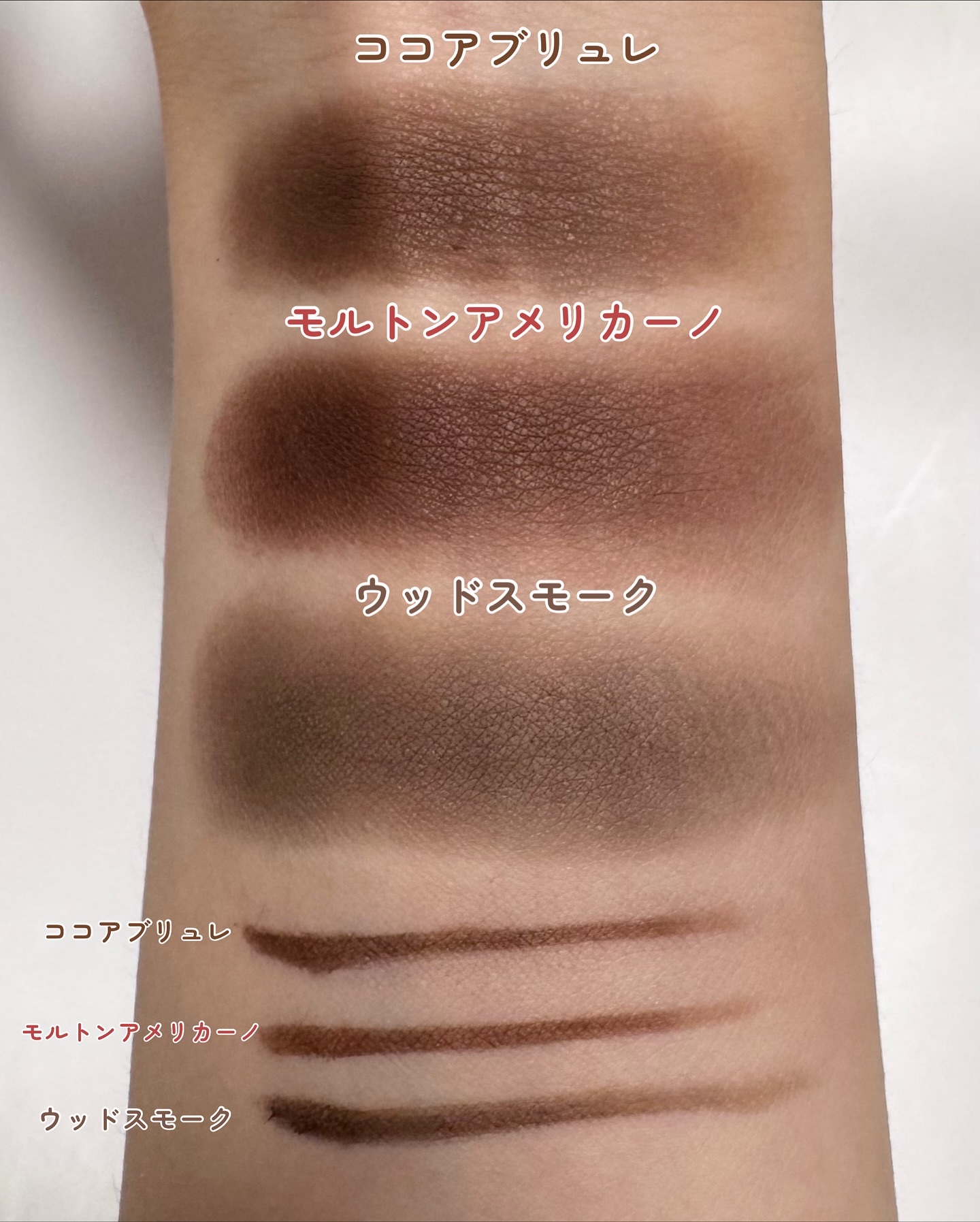 - <02 ピンキッド(PINKID)> タルク、マイカ、窒化ホウ素、シリカ、酸化チタン、ステアロイルオキシステアリン酸オクチルドデシル、フェニルトリメチコン、ミリスチン酸Mg、ジメチコン、ステアリン酸Mg、メチルプロパンジオール、ヘキサ(ヒドロキシステアリン酸/ ステアリン酸/ロジン酸)ジペンタエリスリチル、マカデミア種子油、リンゴ酸ジイソステアリル、プロパンジオール、酸化鉄、トリエトキシカプリリルシラン、サラソウジュ種子脂、水酸化Al、赤226、マンガンバイオレット、メチコン、グンジョウ、黄4、水、カオリン <03 ストロベリークリーム(STRAWBERRY CREAM)> タルク、マイカ、ナイロン-12、酸化チタン、窒化ホウ素、シリカ、ジエチルヘキサン酸ネオペンチルグリコール、フェニルトリメチコン、ジメチコン、ヘキサ(ヒドロキシステアリン酸/ステアリン酸/ロジン酸)ジペンタエリスリチル、ミリスチン酸Mg、メチルプロパンジオール、酸化鉄、マカデミア種子油、ステアロイルオキシステアリン酸オクチルドデシル、ネオペンタン酸イソステアリル、リンゴ酸ジイソステアリル、ステアリン酸Mg、プロパンジオール、ポリブテン、カルミン、ラウロイルリシン、水酸化Al、メチコン、トリエトキシカプリリルシラン、マルトデキストリン、水 <06 ソフティ(SOFTIE)> タルク、マイカ、酸化チタン、シリカ、ステアロイルオキシステアリン酸オクチルドデシル、フェニルトリメチコン、酸化鉄、オクチルドデカノール、ミリスチン酸Mg、メチルプロパンジオール、ジメチコン、マカデミア種子油、トリエトキシカプリリルシラン、ヘキサ(ヒドロキシステアリン酸/ステアリン酸/ロジン酸)ジペンタエリスリチル、ステアリン酸Mg、プロパンジオール、リンゴ酸ジイソステアリル、水添レシチン、マンガンバイオレット、水酸化Al、メチコン、黄4、赤226、カオリン、水 <07 バニー(BUNNY)> タルク、マイカ、酸化チタン、窒化ホウ素、ナイロン-12、シリカ、ジエチルヘキサン酸ネオペンチルグリコール、フェニルトリメチコン、酸化鉄、ジメチコン、ヘキサ(ヒドロキシステアリン酸/ステアリン酸/ロジン酸)ジペンタエリスリチル、ミリスチン酸Mg、メチルプロパンジオール、ステアロイルオキシステアリン酸オクチルドデシル、ネオペンタン酸イソステアリル、リンゴ酸ジイソステアリル、マカデミア種子油、グンジョウ、ステアリン酸Mg、プロパンジオール、ポリブテン、トリエトキシカプリリルシラン、水酸化Al、ラウロイルリシン、黄4、カオリン、カルミン、水、マルトデキストリン <08 カフ(CAFU)> タルク、マイカ、窒化ホウ素、リンゴ酸ジイソステアリル、シリカ、ナイロン-12、ミリスチン酸Mg、酸化鉄、酸化チタン、トリ(カプリル酸/カプリン酸)グリセリル、ステアリン酸Mg、マンガンバイオレット、メチルプロパンジオール、プロパンジオール、ステアリン酸ジメチコノール、ジメチコン、ヒドロキシプロピルビスパルミタミドMEA、ラウロイルリシン、トリエトキシカプリリルシラン、カオリン、水酸化Al、メチコン、グンジョウ、水 <09 ジョリ(JOLI)> タルク、マイカ、酸化チタン、ナイロン-12、ミリスチン酸Mg、ジエチルヘキサン酸ネオペンチルグリコール、フェニルトリメチコン、グンジョウ、シリカ、酸化鉄、ステアリン酸Mg、マンガンバイオレット、ジメチコン、メチルプロパンジオール、ヘキサ(ヒドロキシステアリン酸/ステアリン酸/ロジン酸)ジペンタエリスリチル、ステアロイルオキシステアリン酸オクチルドデシル、ネオペンタン酸イソステアリル、リンゴ酸ジイソステアリル、プロパンジオール、ポリブテン、ラウロイルリシン、トリ(カプリル酸/カプリン酸)グリセリル、メチコン、カオリン、水添レシチン、水酸化Al、トリエトキシカプリリルシラン、水 <12 シェリ(CHERI)> タルク、マイカ、ナイロン-12、酸化チタン、窒化ホウ素、シリカ、ジエチルヘキサン酸ネオペンチルグリコール、酸化鉄、フェニルトリメチコン、ジメチコン、ヘキサ(ヒドロキシステアリン酸/ステアリン酸/ロジン酸)ジペンタエリスリチル、ミリスチン酸Mg、メチルプロパンジオール、マカデミア種子油、マンガンバイオレット、ステアロイルオキシステアリン酸オクチルドデシル、ネオペンタン酸イソステアリル、リンゴ酸ジイソステアリル、ステアリン酸Mg、プロパンジオール、ポリブテン、グンジョウ、ラウロイルリシン、水酸化Al、メチコン、トリエトキシカプリリルシラン、カオリン、赤226、水 <13 メルローズ(MELROSE)> タルク、マイカ、酸化チタン、ナイロン-12、マンガンバイオレット、酸化鉄、ミリスチン酸Mg、ジエチルヘキサン酸ネオペンチルグリコール、フェニルトリメチコン、シリカ、ジメチコン、メチルプロパンジオール、ヘキサ(ヒドロキシステアリン酸/ ステアリン酸/ロジン酸)ジペンタエリスリチル、ステアリン酸Mg、トリエトキシカプリリルシラン、ステアロイルオキシステアリン酸オクチルドデシル、ネオペンタン酸イソステアリ