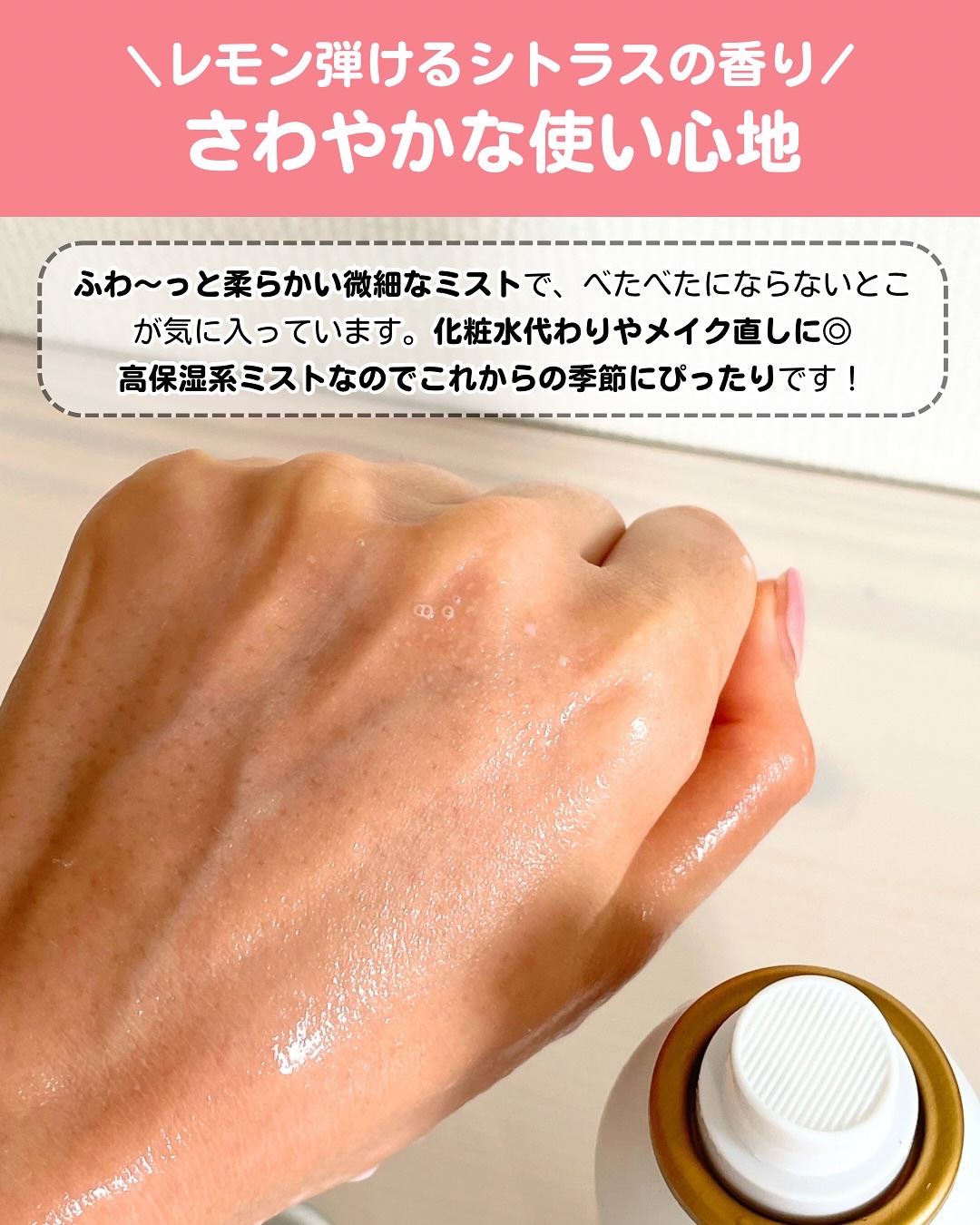 | ミスト化粧水ランキング第47位 | とろみなく軽やかなテクスチャ。でも肌にのせるとクリーム並みのしっとり感◯ | 詳細を見る | |