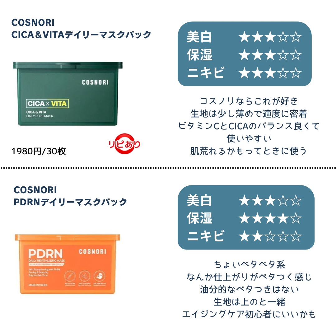 💚💛COSNORI(コスノリ)@cosnori_jpCICA&VITAデイリーマスクパック30枚入り1日1枚、朝にも夜にもOKな手軽に使えるデイリーケア💚たーっぷりの美容液を含んだコスノリのパックCICA(ツボクサ)とVITA(ビタミン)でお...