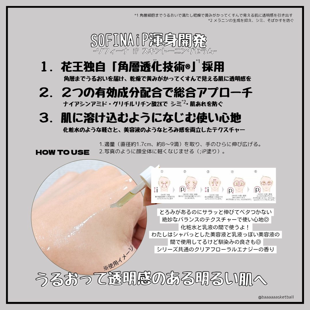 SOFINAiPさまからいただきました▷薬用角層トーニングセラム【医薬部外品】販売名ソフィーナiPスキントーニングセラム肌印象を左右する3大要因(黄みぐすみ、シミくすみ、炎症くすみ)にアプローチ✨とろみのあるテクスチャーですぐに馴染む使い心地...