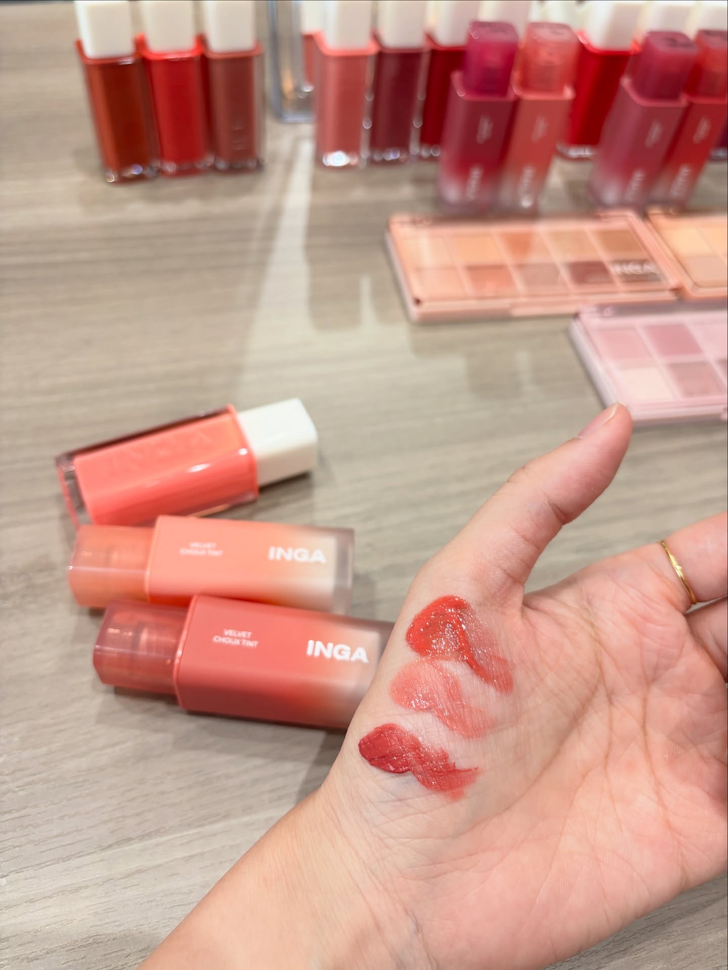 韓国コスメイベントbibintにて参加させていただいたINGAのワークショップの様子です☁️ベルベットシューティントは、シュークリームのようにふわっとなめらかなティントで乾燥も気になりにくいのでお気に入り🧁ベースにぴったりなシューカラーとポイ...