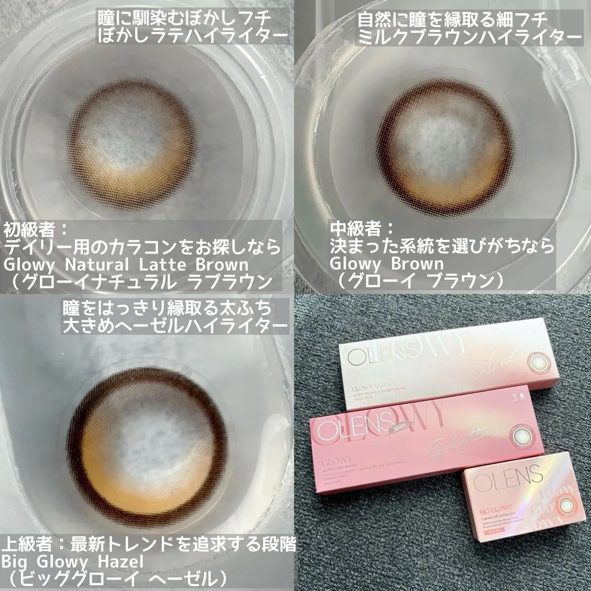 #PR@olens水光カラコンレベル別3種比較💫BigGlowyはアイドルみたいなきゅるんとした瞳に🎀Glowyは水光感が一番好み🩵GlowyNaturalはナチュラルだけど水光レンズだから目に光が入って可愛い✨#POPLENS#OLENS#...