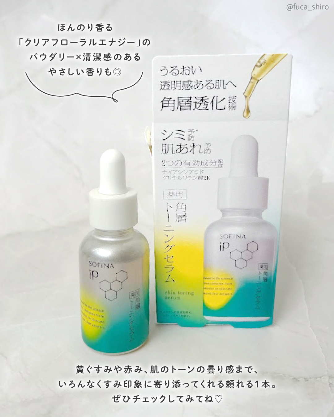 🌿SOFINAiPさまからいただきましたソフィーナiP薬用角質トーニングセラム乾燥でくすんだ肌をうるおいで満たして透明感を引き出すセラム✨シミ、黄ぐすみ、炎症による色ムラからのくすみにアプローチ。シミ予防にはメラニンの生成を抑えソバカスを防ぐ...