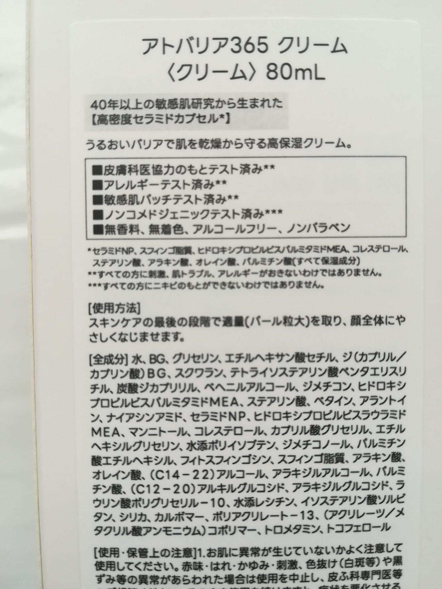 - <80ml> シリカ、水、ベヘニルアルコール、BG、グリセリン、ジメチコン、カルボマー、エチルヘキサン酸セチル、スクワラン、トコフェロール、ステアリン酸、炭酸ジカプリリル、エチルヘキシルグリセリン、水添レシチン、パルミチン酸エチルヘキシル、セラミドNP、ベタイン、コレステロール、フィトスフィンゴシン、水添ポリイソブテン、マンニトール、カプリル酸グリセリル、アラキジルアルコール、パルミチン酸、アラントイン、イソステアリン酸ソルビタン、テトライソステアリン酸ペンタエリスリチル、ナイアシンアミド、(C12-20)アルキルグルコシド、オレイン酸、ラウリン酸ポリグリセリル-10、トロメタミン、ジメチコノール、ジ(カプリル/カプリン酸)BG、(C14-22)アルコール、スフィンゴ脂質、ポリアクリレート-13、アラキン酸、ヒドロキシプロピルビスパルミタミドMEA、ヒドロキシプロピルビスラウラミドMEA、アラキジルグルコシド、(アクリレーツ/メタクリル酸アンモニウム)コポリマー