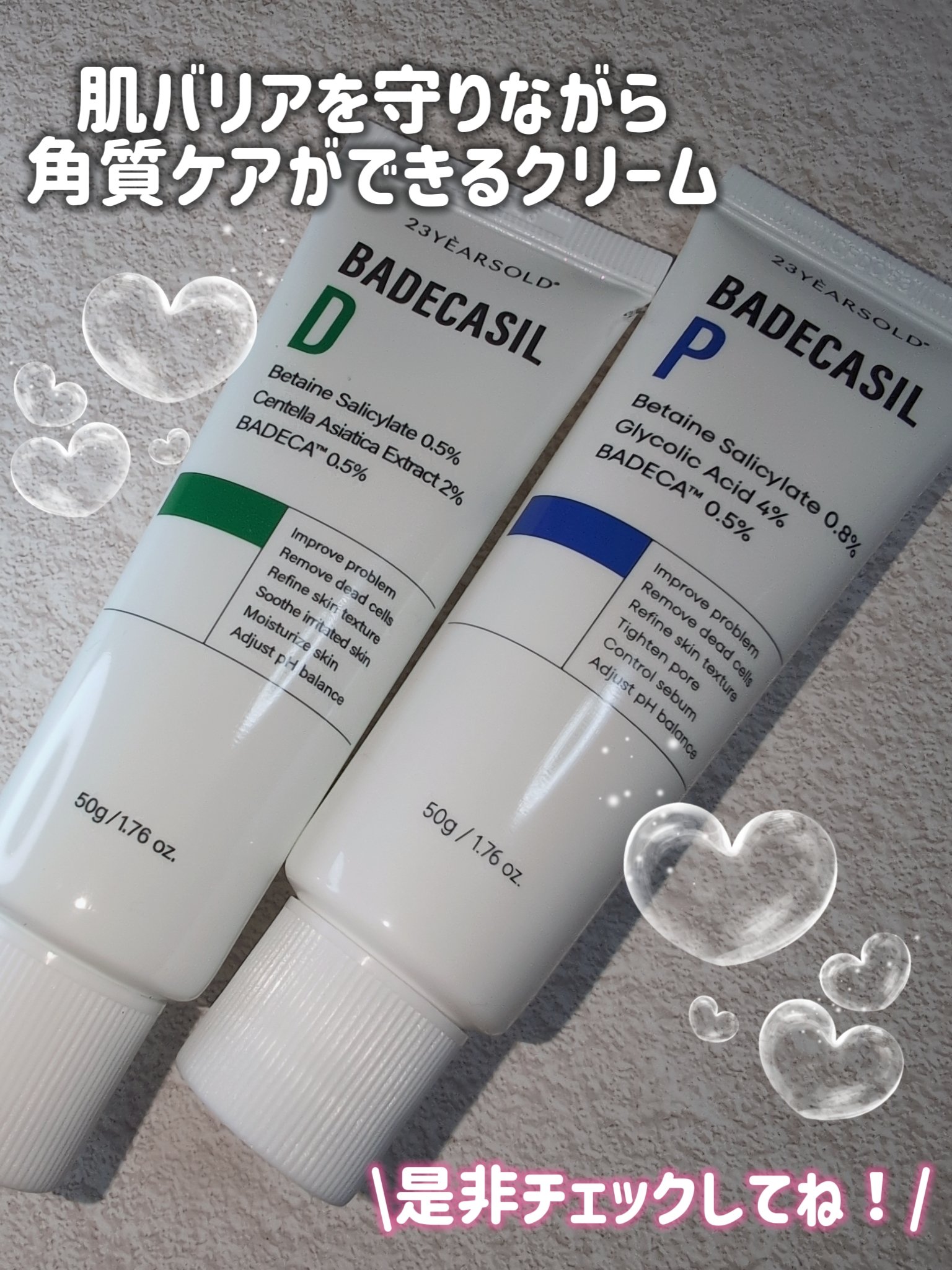 @23yearsold.jp💙バデカシルP50g💚バデカシルD50gどちらも塗りやすくでもベタつきはないです🙆♀️Dの方が少し重めのクリーム💚保湿もニキビも気になっていたのでしっかりケアさせてもらいます😊🫧-塗るタイプの角質ケアクリーム-韓...