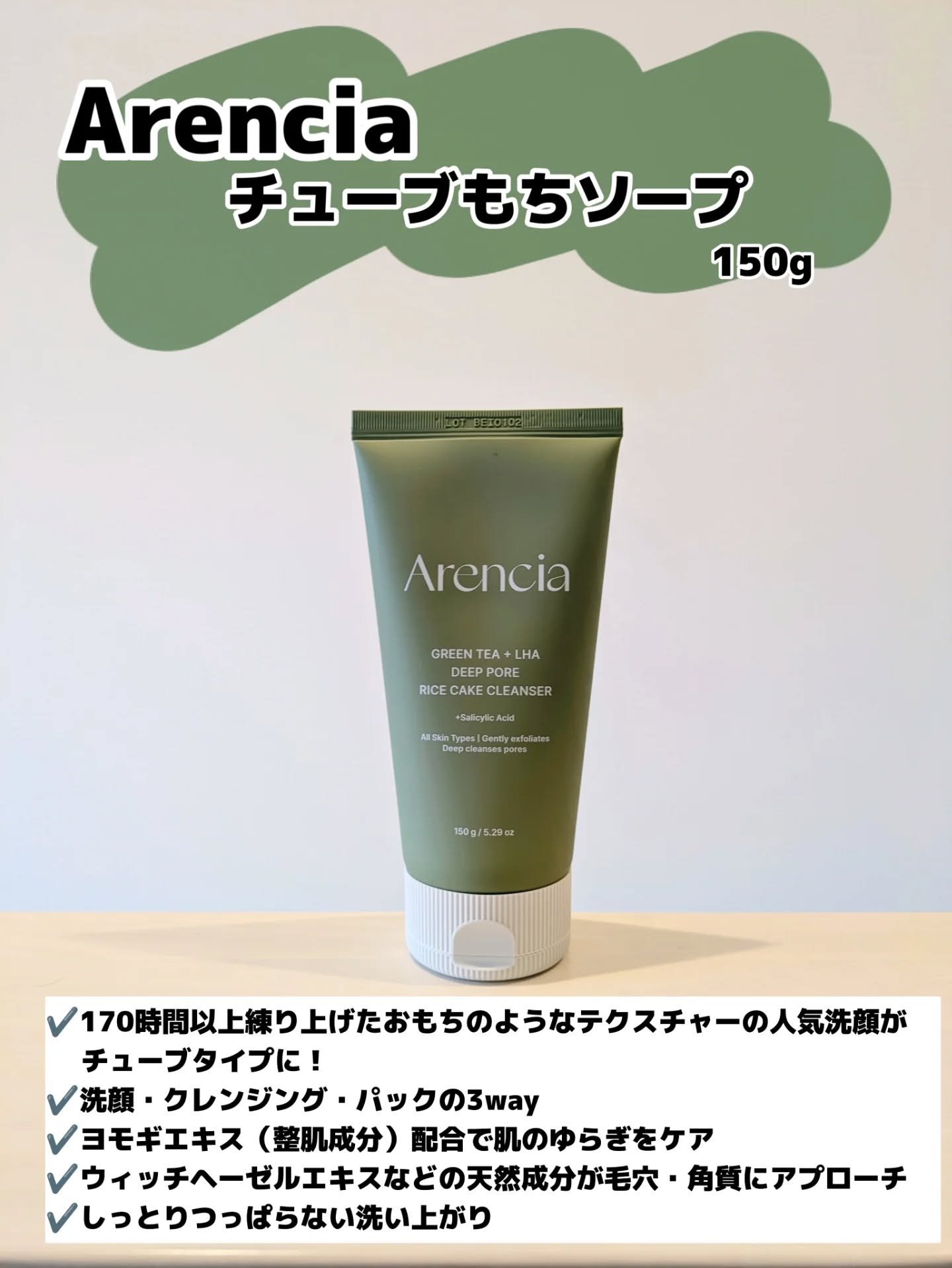 𓍯チューブもちソープ[グリーン]⌇Arencia話題の大人気クレンザー『プレミアムもちソープ』からチューブタイプが登場💚✨面倒くさがり屋の私はジャータイプより断然チューブタイプ派なので嬉し過ぎる!お餅みたいなもちもちテクスチャで肌あたりなめら...
