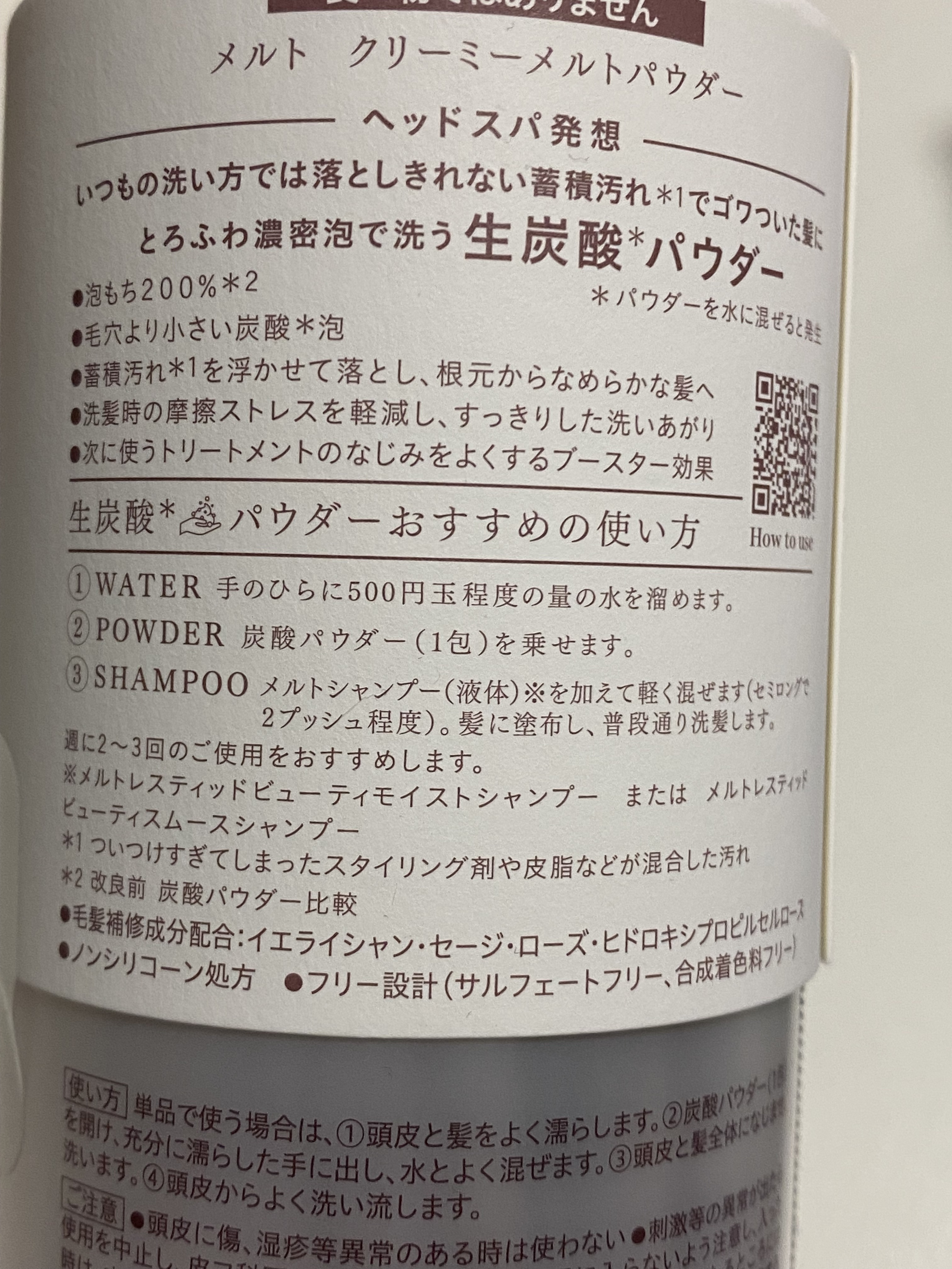 メルトモイストシャンプー/トリートメントメルトクリーミーメルトフォームクリーミーメルトフォームはシャンプーと混ぜて使います。クリーミーな炭酸泡になって髪となじませた時の泡立ちが良くて、すごく気持ちいい!洗い上がりもすっきりします♡頭皮の皮脂汚...