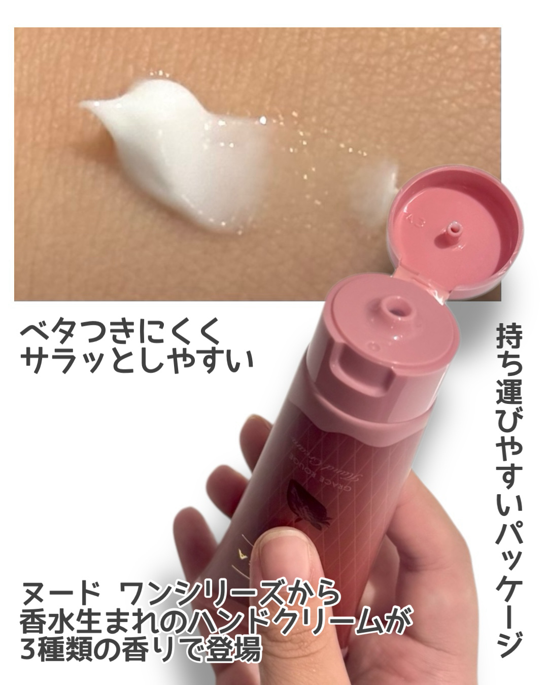 - 【商品特徴】 ・香水グレードの香料を使用した「フレグランスティント処方」 ・甘くとろけるうるおい感。保湿成分として、ハチミツ/アーモンドオイル※1を配合。(※1:アーモンド油) ・しっとりサラサラテクスチャー 【香りの特徴】 とろける甘さのデザートハンドクリームの香りは、 「ヌード ワン」の甘美なアップルプラリネの香り、 「シルキー フローラ」のやわらかなフローラルバニラの香り、 「グレイス ルージュ」の濃密なスパイシーベリーの香りの3種。 ハンドクリーム単体で楽しむのはもちろん、 同じ香りのオードパルファムと香りを重ねることで、 よりリッチで奥行きのある印象を演出できます。 ■先行発売日 : 2025年9月3日(水)より、先行発売中 ■先行販売先 : 全国のロフト(一部店舗除く)及びロフトネットストア 、オンラインストア「FITS you. STORE」