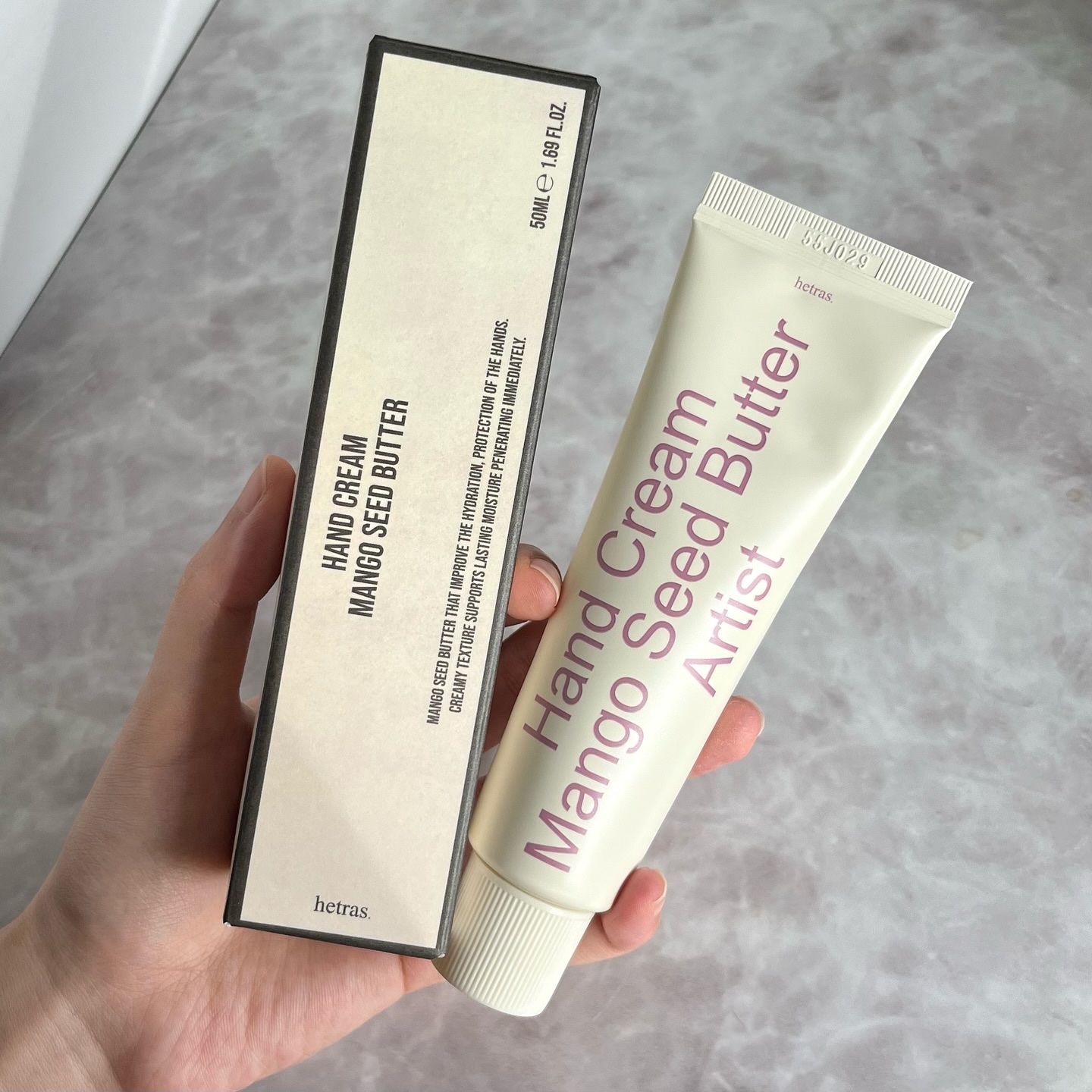 ヘトラスパフュームシルキーハンドクリームシルクのようにすっと馴染むテクスチャーで、塗った直後からさらっとした印象。マンゴーシードバターや植物由来成分が配合されていて、手元をケアしながら香りも楽しめるのが魅力です✨️@hetras.offici...