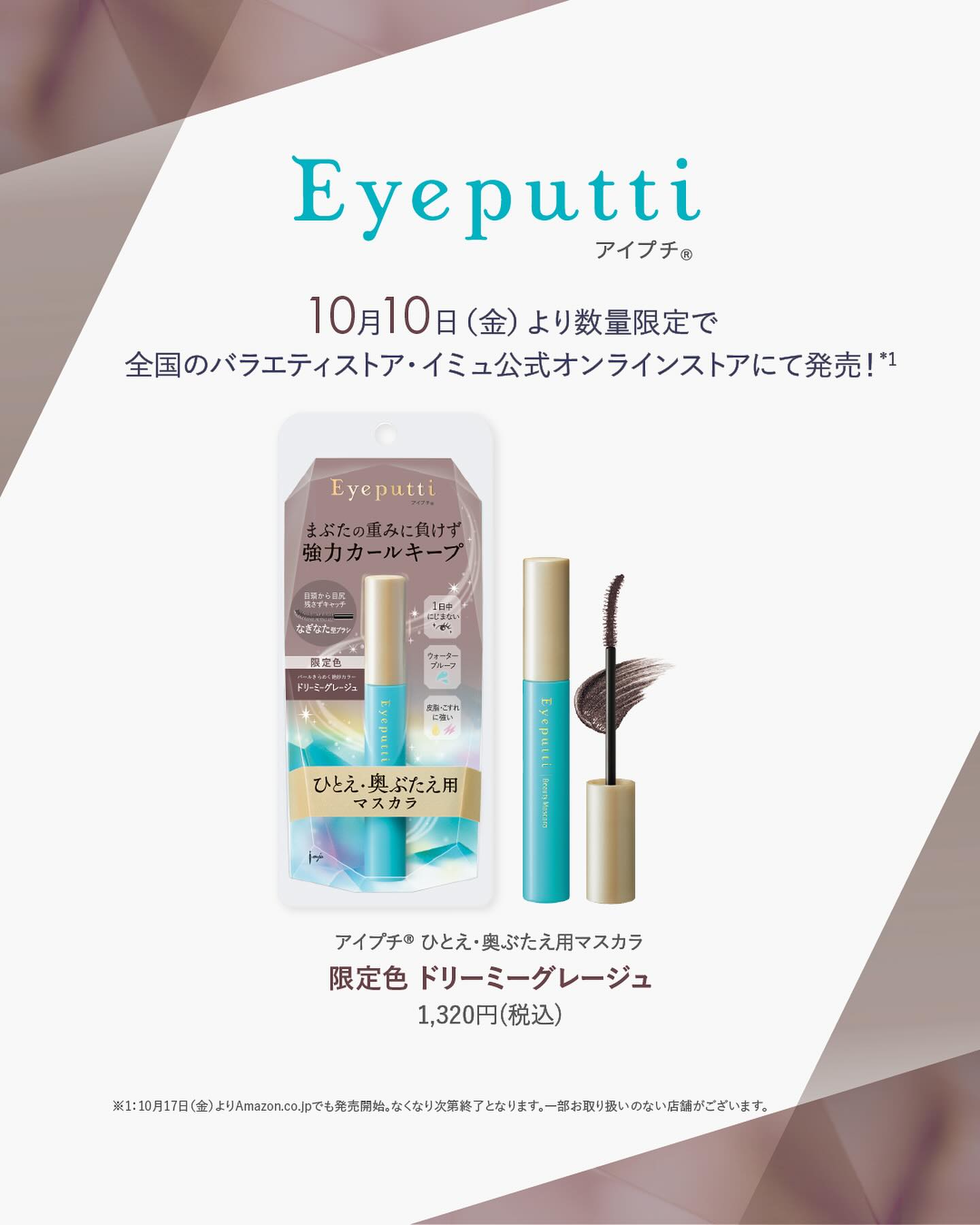 アイプチから限定色のドリーミーグレージュが登場!Eyeputtiひとえ・奥ぶたえ用マスカラドリーミーグレージュパールがキラッときらめくカラー!白くくすまずまつ毛がパッと際立つ🌟なぎなた型ブラシだから目頭から目尻まで残さずキャッチ💞ウォータープ...