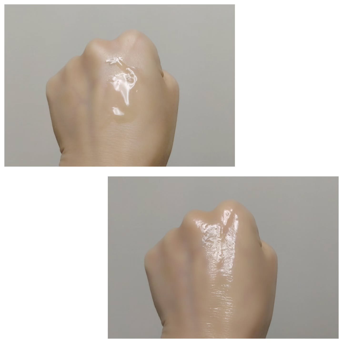 手に取ってみるととろみのあるテクスチャー なんでも、資生堂サロン&スパ監修で、ご褒美エステ気分が高まる使い心地を追求したこだわりのテクスチャーなんだそう とろみはあるけれど少量で伸びもよく、使いやすいです。 吸いつくような使い心地 しっとりするけれどべたつかず、エアコンシーズンのこれからの時期にも良さそうです