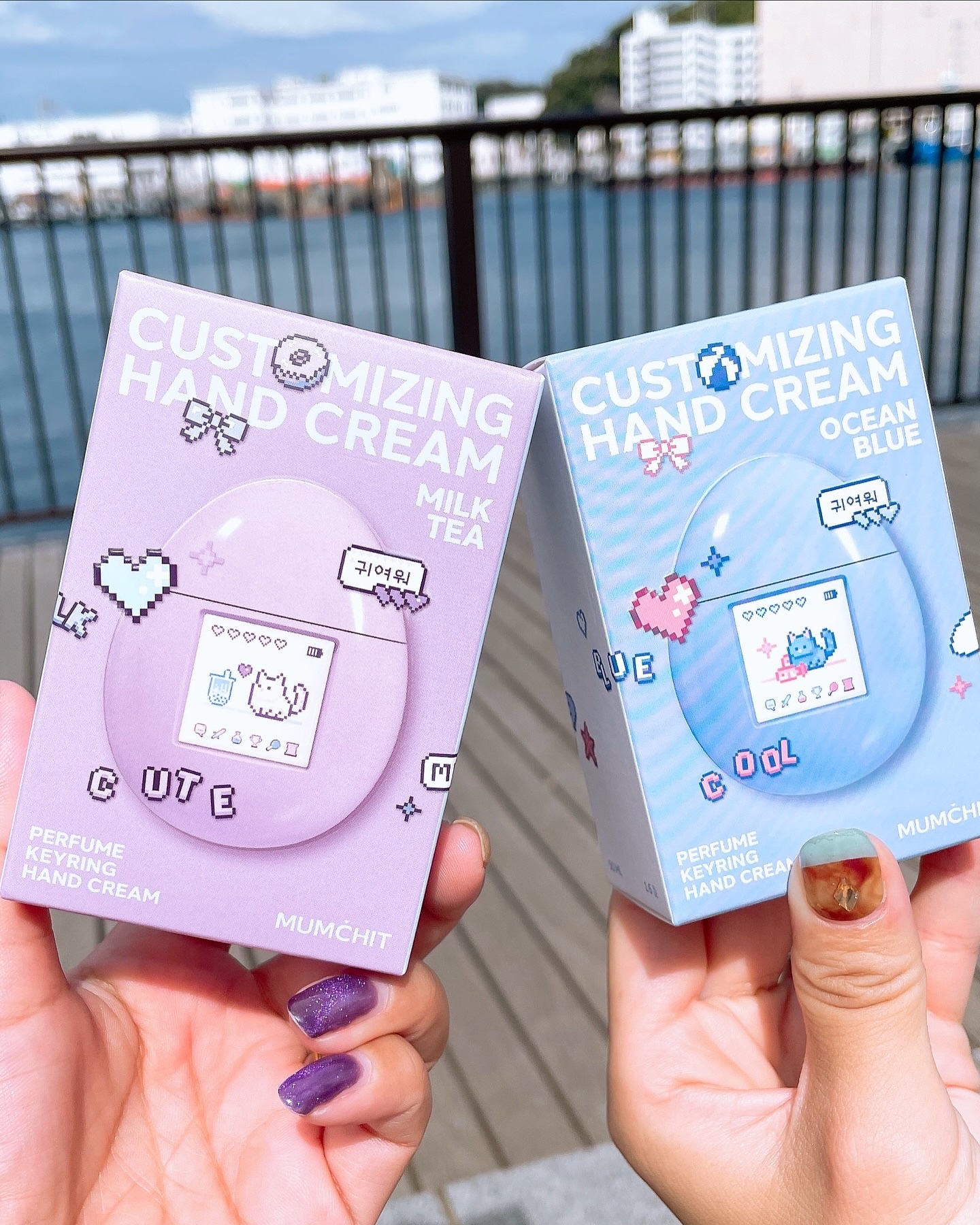 - 〈数量限定〉 洗練された香りやボトルデザインで人気の韓国フレグランスブランド「モムチ」から、手のひらサイズのハンドクリームが新登場。ころんとしたフォルムが可愛いこのハンドクリームは、持ち運びに便利なキーリングタイプです。付属のハート型キーリングをバッグにつければ、まるでファッションアクセサリーのように持ち運ぶことができます。また、デコレーションを楽しめるシールを2枚付属。自由にデコレーションすれば、あなただけのオリジナルハンドクリームが完成します。 香りは全4種類。ふわっとときめくローズの香り、あまくとろけるミルクティーの香り、ふんわりほどけるやさしいコットンの香り、ほんのりあまいクールマリンの香りといった、個性豊かなラインナップです。 デザインや香りだけでなく、ハンドクリームとしての使い心地も追求しました。保湿成分*配合で、しっとりとうるおうのにベタつかず、肌にすーっとなじむテクスチャーを採用しています。(*シア脂、グリセリン、アラントイン) キーリング付きでファッションアイテムとしても楽しめるハンドクリームを、ぜひお楽しみください。