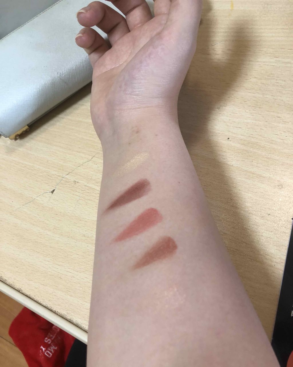 前回の投稿のパウダーアイシャドウを見つけた時に同じくエアリーアイカラーも一緒に新色らしきものが出ていたのでこちらもスウォッチだけしていきました〜⸜❤︎⸝URGLAMエアリーアイカラーGD-1ゴールドBE-2シャイニーベージュPK-2シャイニ...