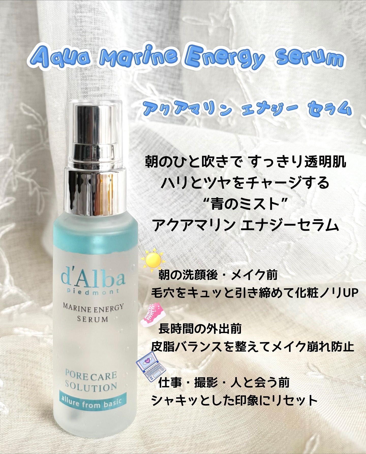 🫧💜d'Alba◌𓈒𓐍♥ホワイトトリュフファーストスプレーセラム♥バイタルスプレーセラム♥アクアセラム♥ビタトーニングエイジングケアセラム8%♥アクアマリンエナジーセラム@dalba_japan保湿・ツヤ・鎮静・トーンアップ・クーリングまで、...
