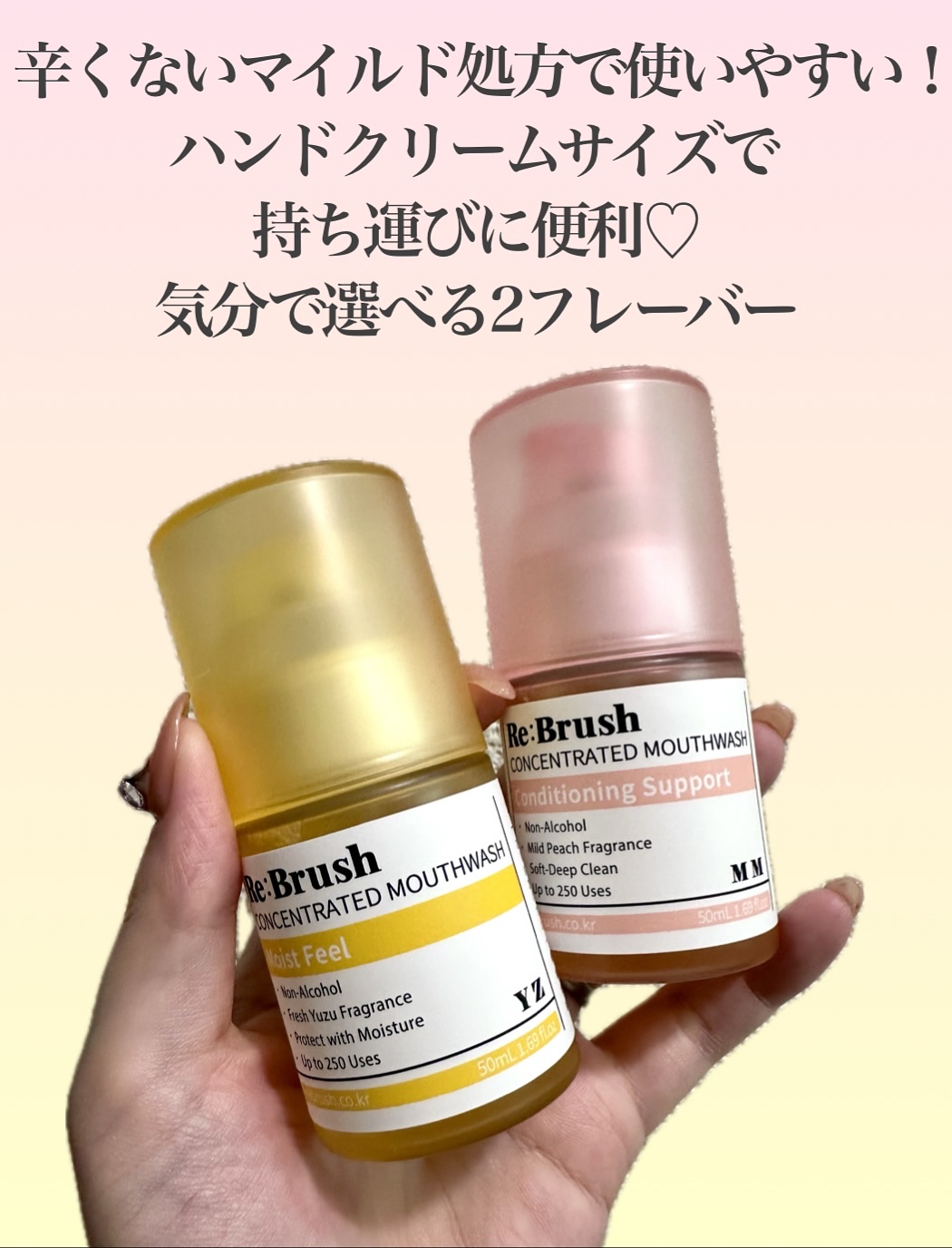 辛くないマイルドな使用感で毎日の口内ケアがもっと楽しく👄「Re:Brush」から、人気の濃縮マウスウォッシュに新フレーバー“ピーチ&ゆず”が登場🍑🍋ハンドクリームサイズで持ち運び最適😌💗お出かけ先やオフィスでも気になるときにサッとリフレッシュ...