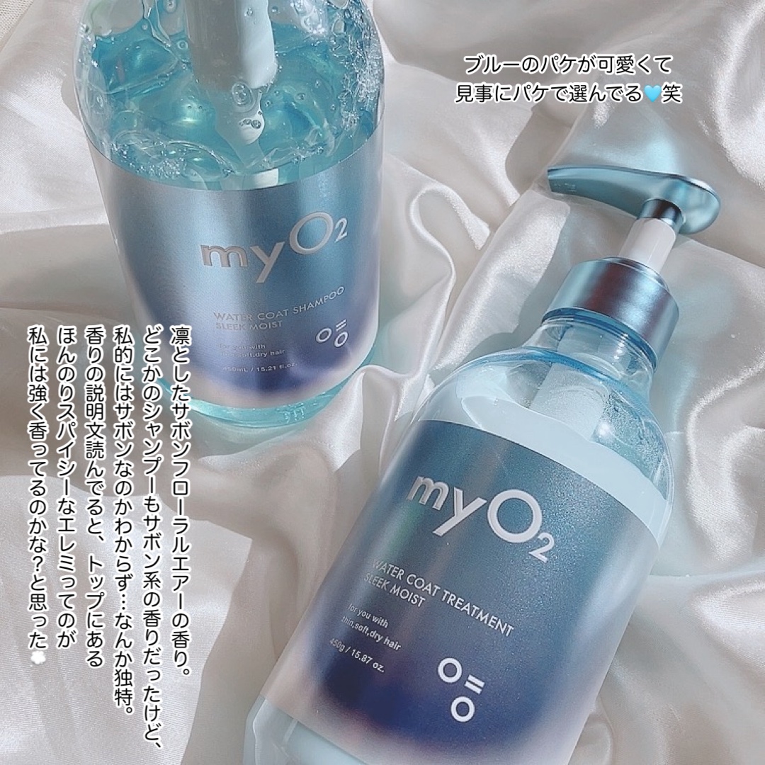 【myO2マイ・オーツーウォーターコートシャンプー/トリートメントスリークモイスト】myO2さまからいただきました髪の細さ別に選べるシリーズで、これは細髪向けのスリークモイスト🩵サラサラぷるんと軽やかな仕上がり!仕上がりはとっても好みなんだけ...