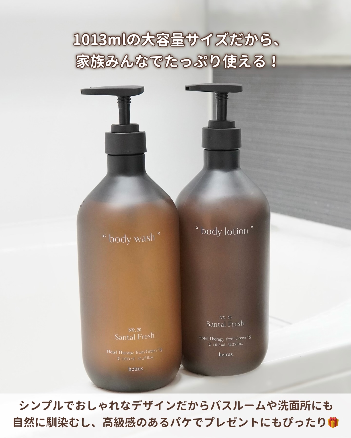 ヘトラスホテルセラピーボディウォッシュ/ボディローション(サンタルフレッシュ)@hetras.official.jp韓国1位香りブランド【ヘトラス】大容量のボディウォッシュとボディローションのご紹介です。シンプルでおしゃれなデザイン!どこに置...