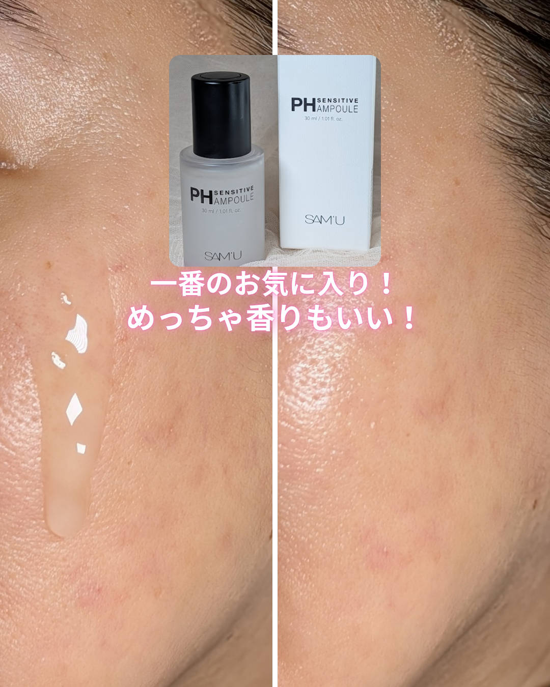 SAM'U【サミュ】PHセンシティブアンプル30mlSAM'Uアンバサダー投稿です😊✔︎ナイアシンアミド・アデノシン含有で美白とシワ改善をサポートする高濃度アンプル✔︎べたつかずしっとり馴染み、乾燥をケア✔︎6種類の肌荒れケア成分がたっぷり含...