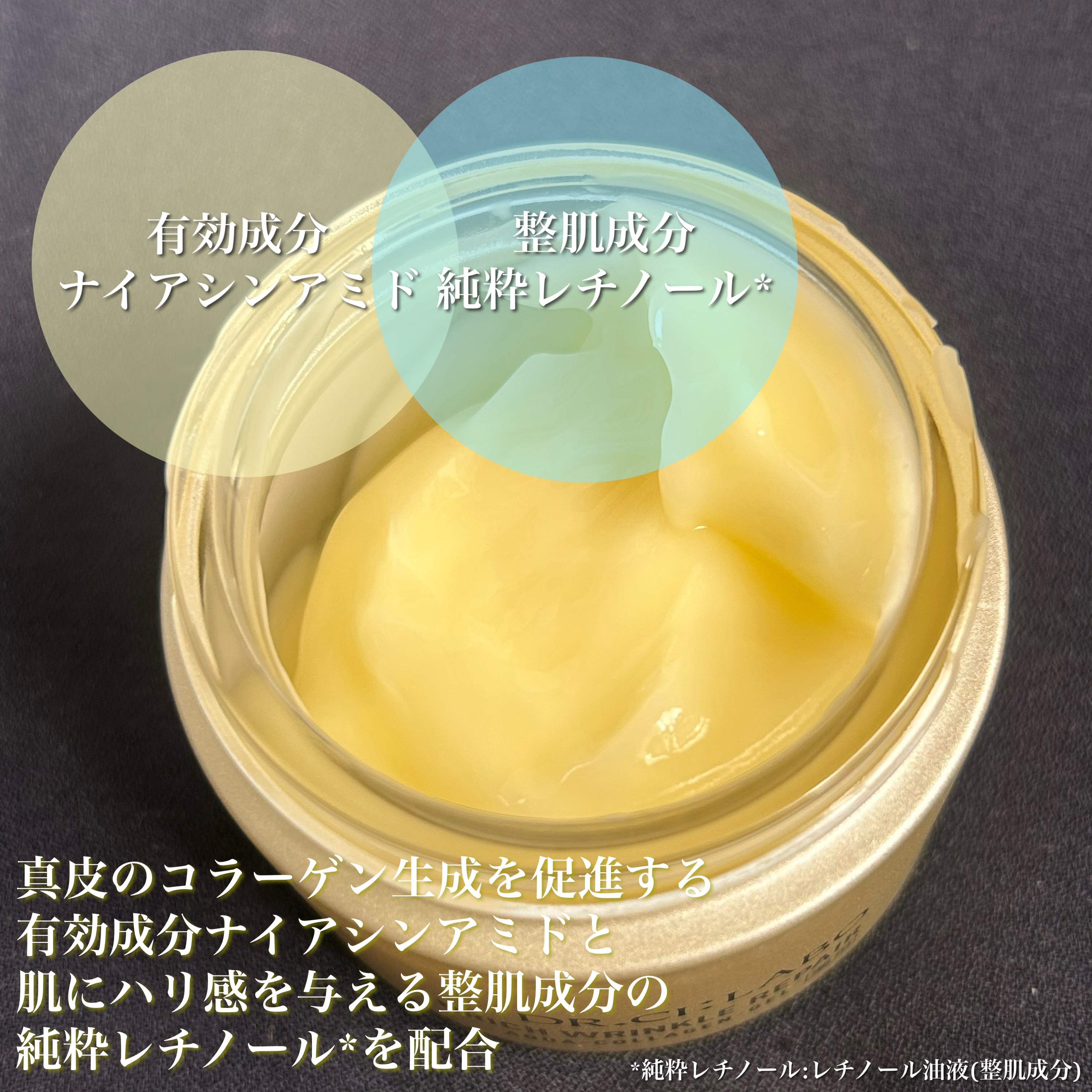 - 【医薬部外品】 (1)シワのメカニズム、肌本来の「バネ機能」の緩みに着目 年齢ともに減少し、ゆるんだバネのようになる真皮のコラーゲン。 そのコラーゲンを立て直す、独自のアプローチを開発。 (2)美容皮膚科学で推奨される3大美容成分配合 真皮のコラーゲン生成を促進し、シワを改善する「ナイアシンアミド*¹」に加え、 ハリ、弾力感を与える「純粋レチノール*²」と「浸透型コラーゲン*³」を配合。 (3)気になるシワの集中ケアも、全顔のハリ・弾力感ケアも みずみずしいゲルにクリームのようなコクをプラス。集中ケア効果の高いリッチなテクスチャー。 さらになめらかに伸びて負担をかけず、肌全体をケア。 浸透:角層 *1 有効成分 *2 レチノール油液(整肌成分) *3加水分解コラーゲン末(整肌成分) ※2025年8月18日〜順次パッケージリニューアル