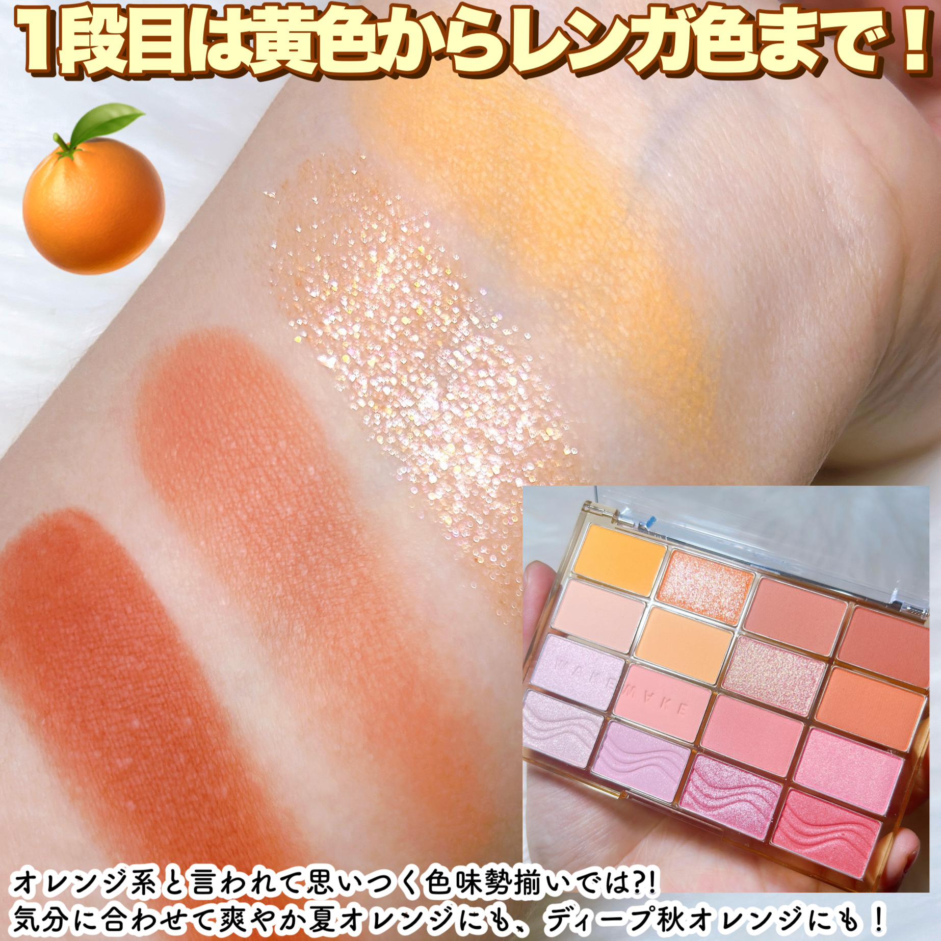 \\イエベ歓喜💓夏っぽオレンジ🍊//◎wakemakeソフトブラーリングアイパレット22.メロウオータムブラーリング¥2,970夏っぽいオレンジとカーキ〜ブラウン系おしゃれすぎカラー。マット、シマー、グリッターも入ってるしバームも3色。発色、...