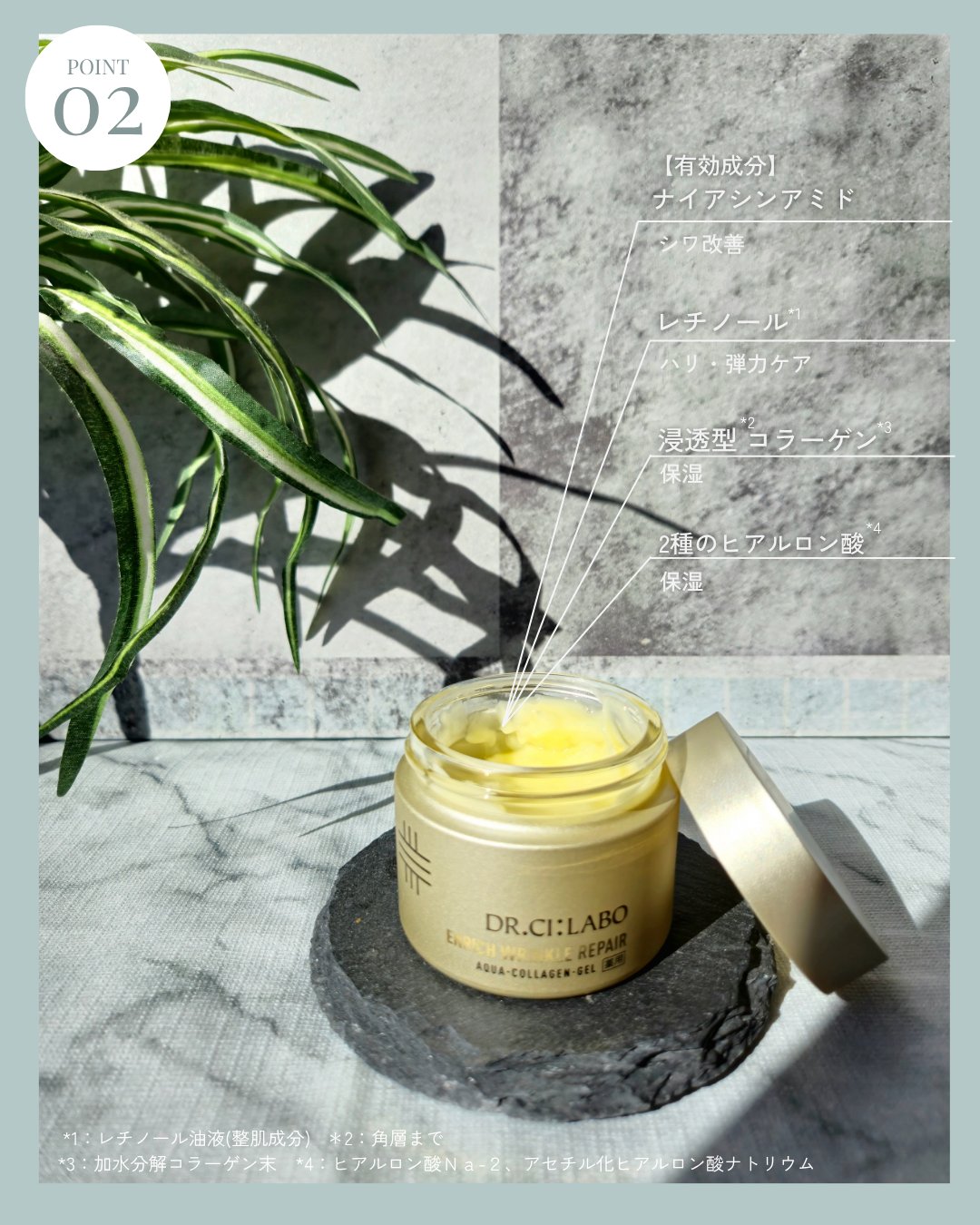 発表会に参加し、ドクターシーラボ様からいただきました。DR.CI:LABO薬用アクアコラーゲンゲルエンリッチリンクルリペア【医薬部外品】容量:50g価格:7,590円(税込) 昨年新発売したシワ改善ゲル「薬用アクアコラーゲンゲルエンリッチリ...