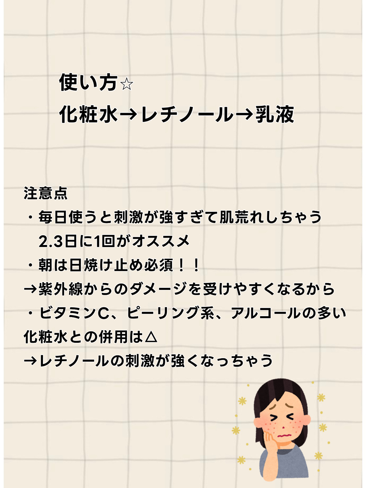 【使った商品】アヌアレチノール0.3ナイアシンリニューイングセラム【商品の特徴・使用感】ベタつかず、伸びやすいテクスチャー【良いところ】レチノール成分0.3でレチノール初心者さんに使いやすい。【イマイチなところ】レチノール成分0.3だから効果...