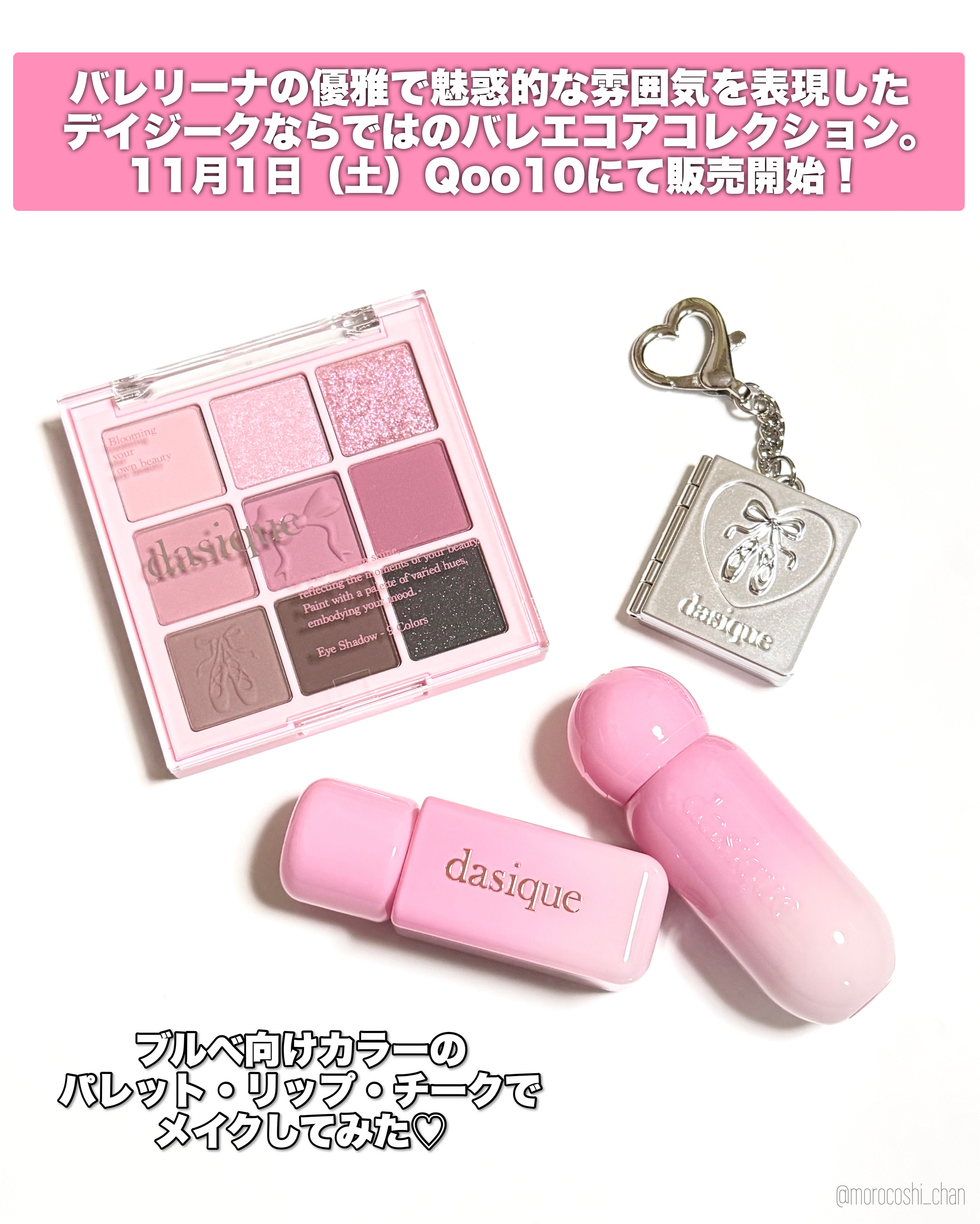 dasiqueバレエコアコレクション🩰バレリーナの優雅なシルエットと魅惑的な雰囲気を表現したピンクカラーのバレエコアコレクション🎀シルキーベールブラッシュとマルチクワッドアイシャドウは新作アイテム!カラーもパッケージも毎回可愛い…🥺💗11月1...