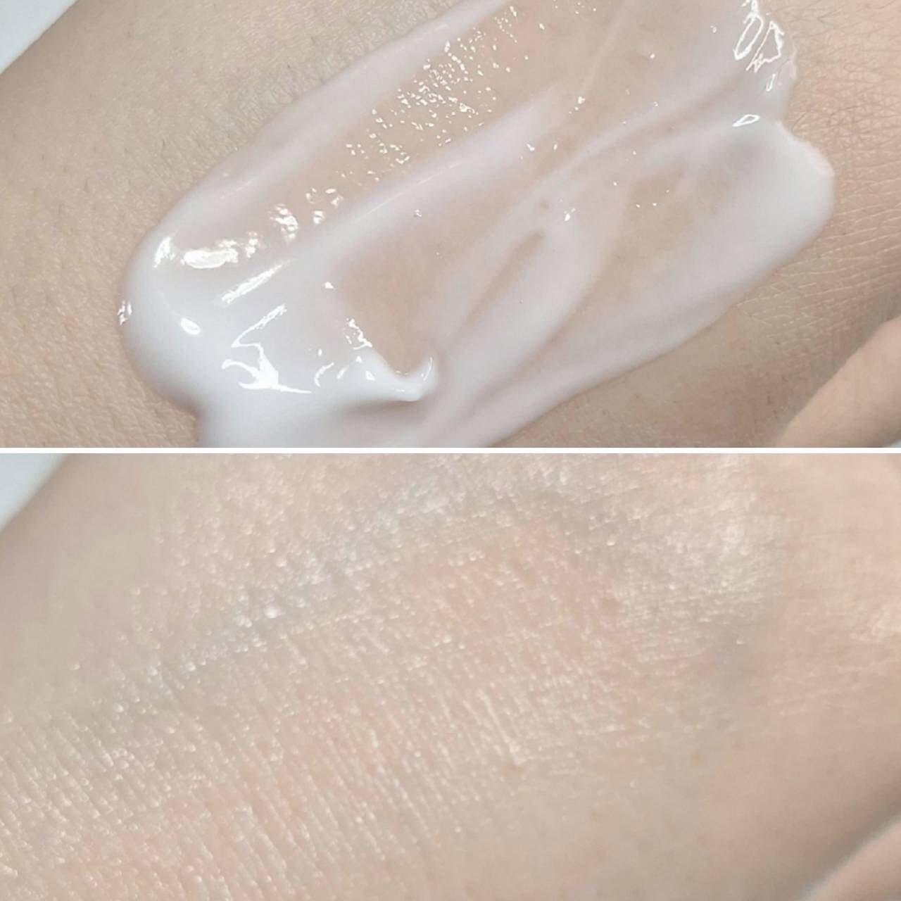 硬めのテクスチャーでチューブを強く押さないと出てきません🤣笑 米粒1粒程度という極小量で、両目の上下まぶたが十分に塗れます❗ 色は少し白っぽいですが気になるほどでもなく、ウォータープルーフ処方ですが夕方になっても乾燥せず、持ちも良かったです👍❤️ 二重幅にアイシャドウが溜まることもなかったです‼ 550円って考えたら破格😳 かなり能力の高いアイシャドウベースだと思います🧡
