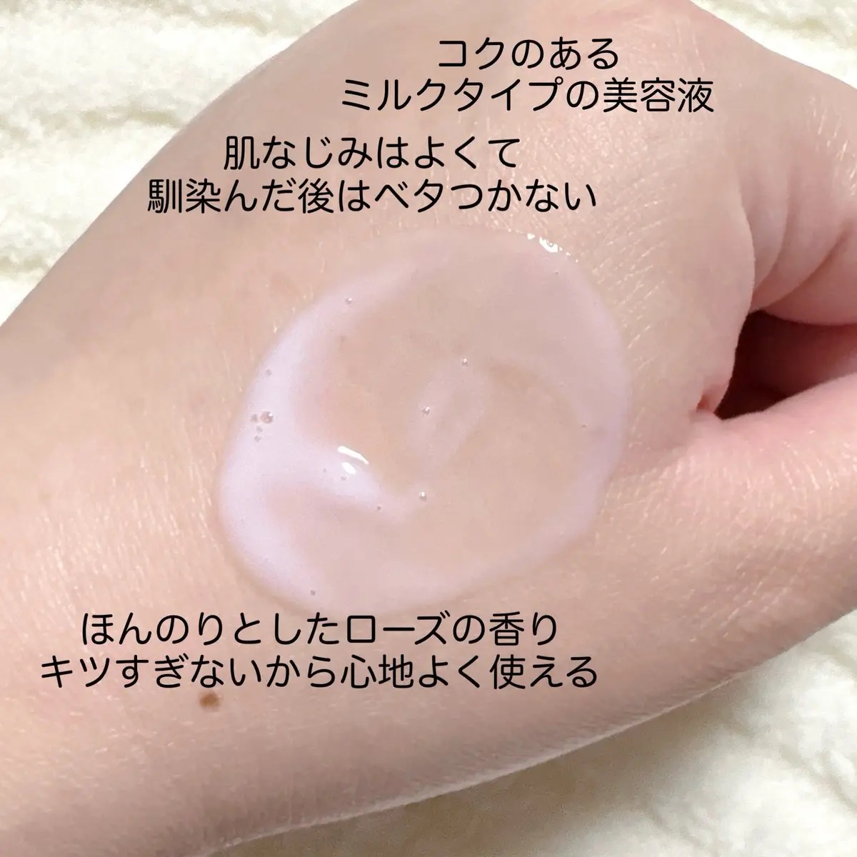 - 洗顔後、スキンケアの最初に使う導入美容液。 みずみずしく清らかなミルクエッセンスが、肌にすばやくなじみ浸透*。 肌のすみずみ*を豊潤なうるおいとハリで満たし、やわらかでイキイキとした肌へ。 ■主な成分 浸透型エクソソーム、サーチュライザーS6(肌にハリと弾力を与える保湿成分) アクアスタックコンプレックス(肌にうるおいとツヤを与える保湿成分) プルーン分解物、アミノセラミド(角質柔軟・浸透*補助成分) 水密ブースト処方(美容保湿成分を肌に届ける処方) 弱酸性、無着色、無鉱物油、パラベンフリー、アルコールフリー アレルギーテスト済み(すべての方にアレルギーが起きないわけではありません) 肌にうるおいを与えて乾燥による小ジワを目立たなくし※、ハリ・弾力に満ちた肌を保ちます。 ※効能評価試験済み *角層まで ダマスクローズを基調としたエレガントで深みのある香り 2025年10月1日(水)から@cosme TOKYO、@cosme NAGOYA、@cosme OSAKAで先行販売