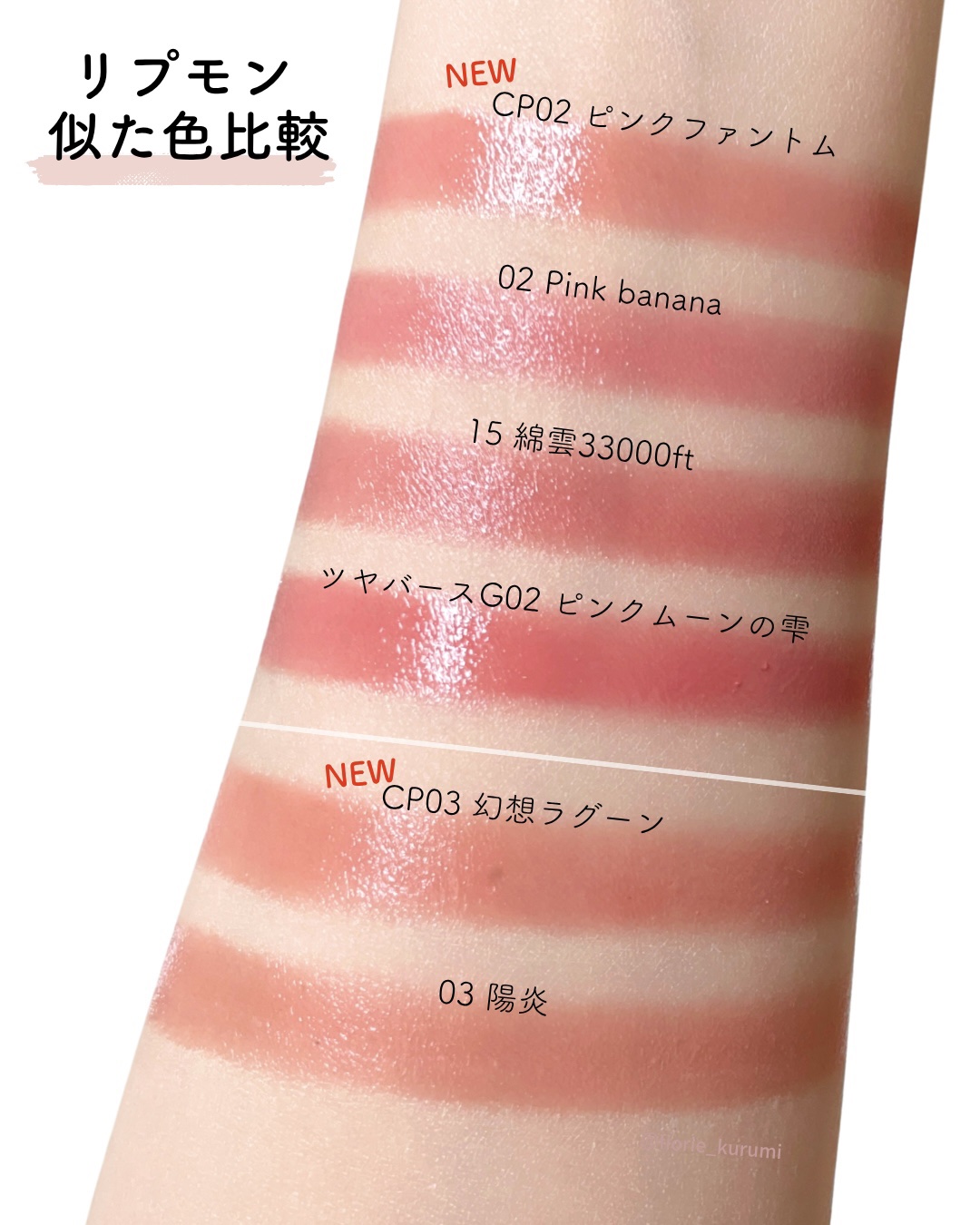 01 欲望の塊 青み寄りの明るめで澄んだピンクレッド やや鮮やかまでいけるブルベ夏、 明るさ得意なブルベ冬におすすめ! 08 モーブシャワー (WEB限定) しっかり青みの淡い青ラメ入りラベンダー 単体なら淡さ得意なブルベ夏に! ブルベ全般の重ねて青み足し要因にも◎ 15 綿雲33000ft (新色) ほんのり黄みの鮮やかめなコーラルレッド 2ndブルベでやや鮮やかまでいけるイエベ春に! 09水晶玉のマダムよりもほんのり柔らかめ◎