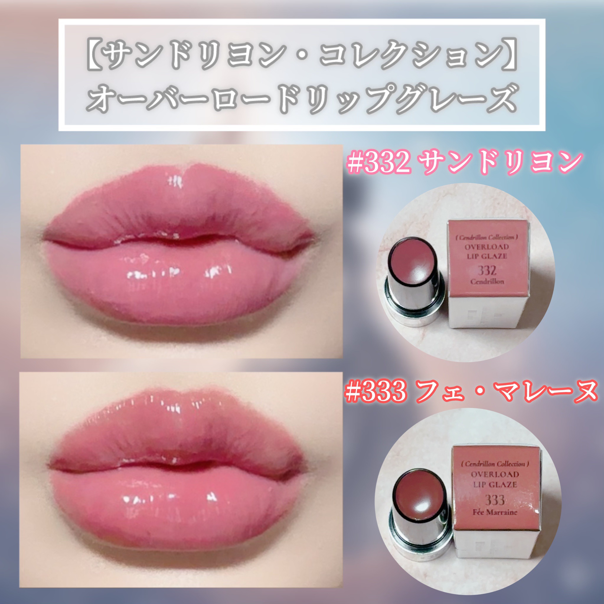#PRDintoオーバーロードリップグレイズ332Cendrillonサンドリヨン(シンデレラ)ライラックモーヴにベージュをひとさじ加えたカラー333FéeMarraineフェ・マレーヌ(魔法使い)深みのあるオートフィグカラー童話シンデレラを...