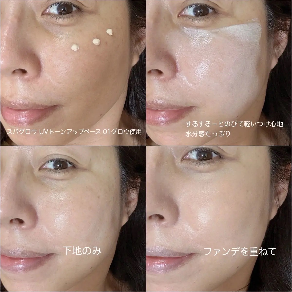 - スパグロウUVトーンアップベースはたったたった一層の差で肌の土台を変える、キメも毛穴も瞬間カバーする私史上最強化粧ノリベースです。 リアルスパ成分配合で、水分チャージから美白ケアまでこれ1つで完結。 理想の仕上がりを追求し、肌タイプに合わせて2種類からお選びいただけます。 01グロウはツヤ肌が好きだけどテカリは苦手で、毛穴までしっかりカバーしたい混合肌の方におすすめ。 02 リッチグロウは乾燥によるメイク崩れにお悩みで軽いのに強力なUVカットまで求める乾燥肌の方におすすめします。 11月1日(土)に開催予定のQoo10メガセールにて、「スパグロウUVトーンアップベース」がついに販売開始