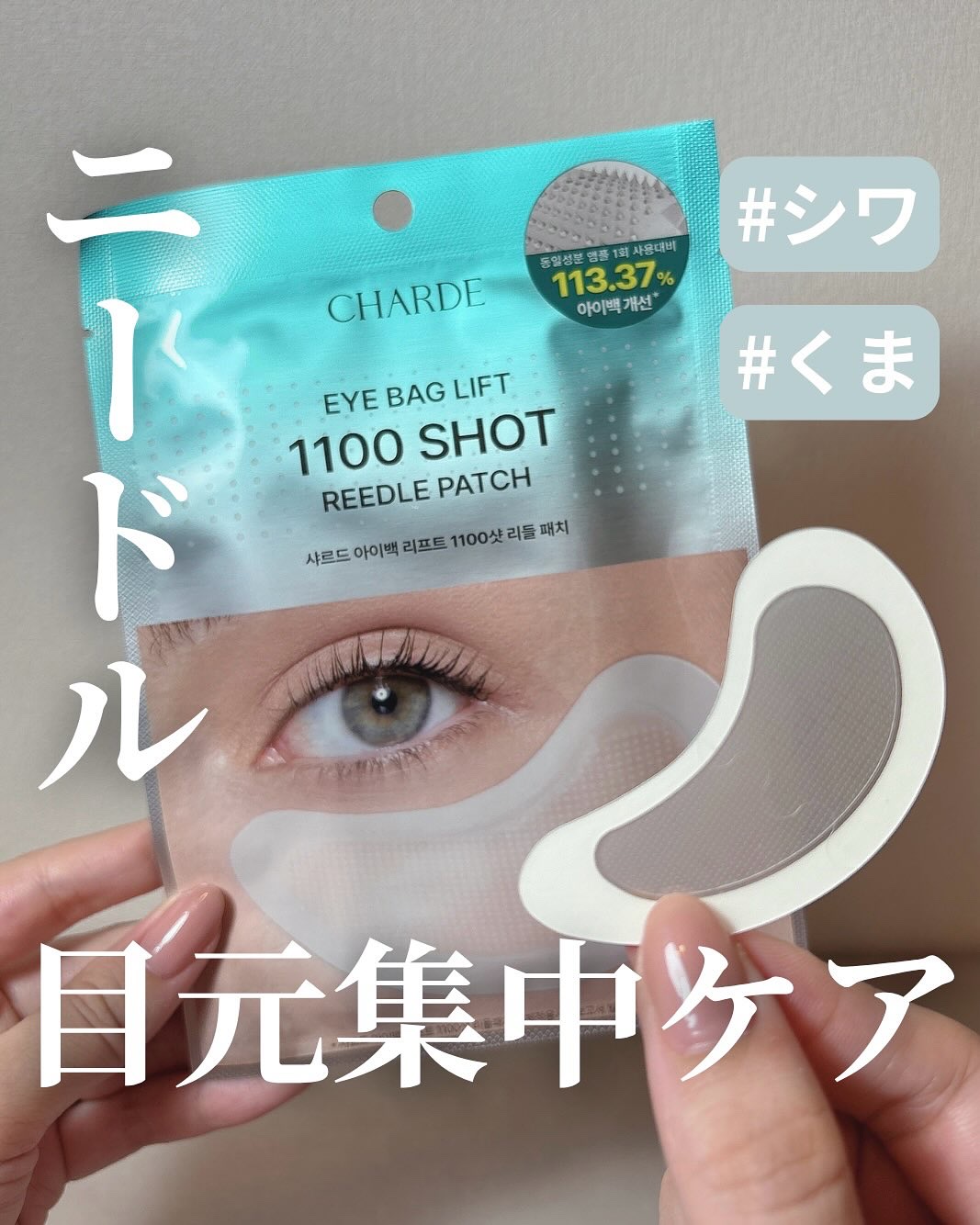 寝不足続きでおつかれな目元に👀💤気になっていた【CHARDEニードルアイパッチ】をお試ししました✨1100本のマイクロニードルに凝縮されたアンプルが、じんわりと角質層まで届く感じが気持ちいい💎貼って寝るだけで、翌朝のハリ感が違うんです…!夜更...