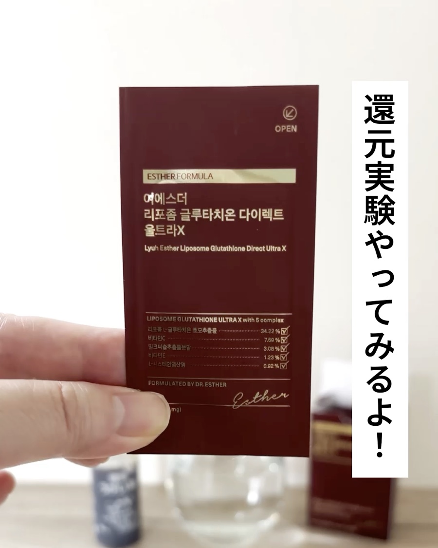..EstherFormula(エスターフォーミュラ)ヨエスターリポソームグルタチオンダイレクトウルトラ9X貼るグルタチオンで有名なエスターフォーミュラのグルタチオンフィルムが、グルタチオン純度90%グルタチオン含有量135mgにグレードアッ...