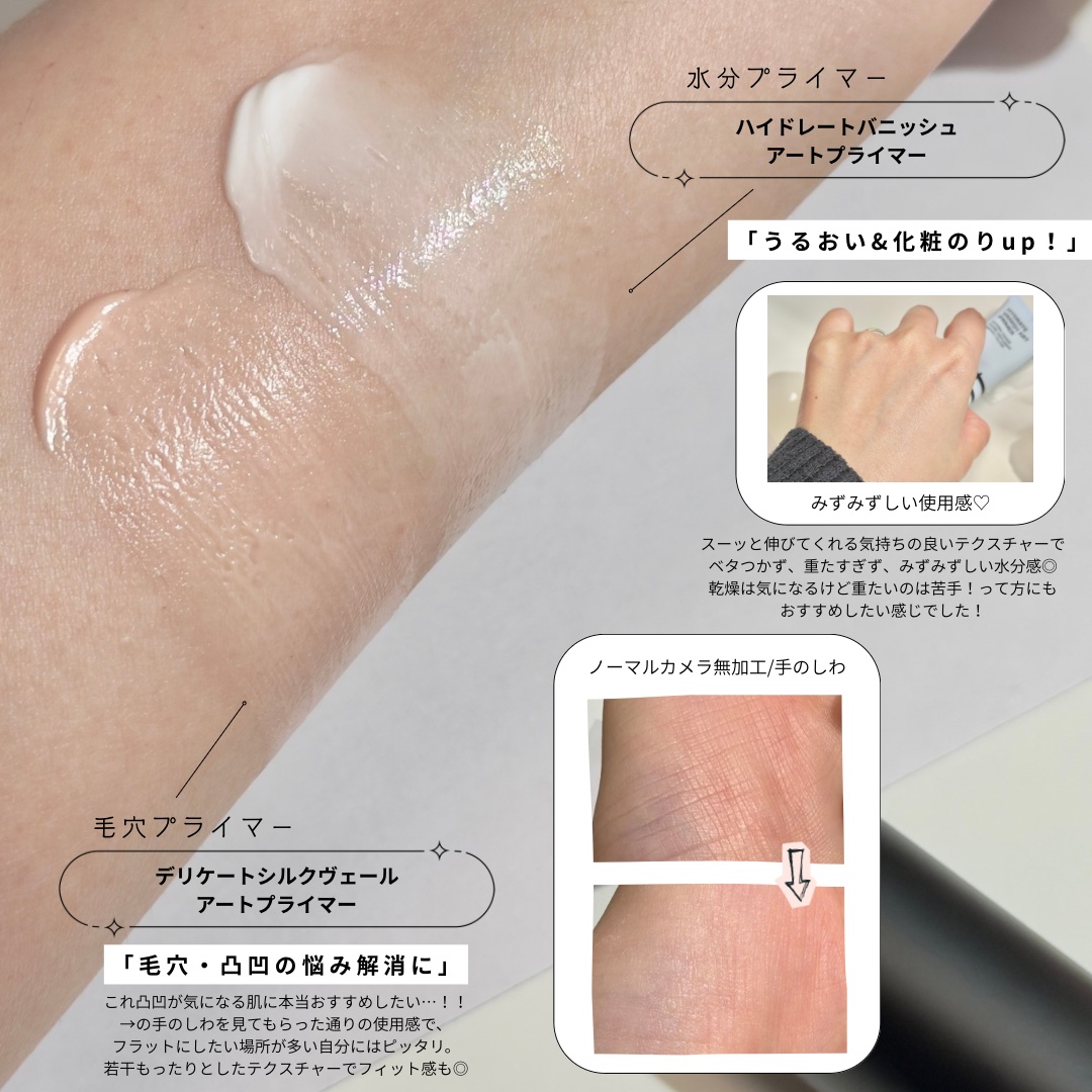 毛穴はぼかして、うるおいチャージ💖TFIT▫️デリケートシルクベールアートプライマー▫️ハイドレートバニッシュアートプライマー毛穴レスプライマーで毛穴をぼかして、保湿プライマーでうるおいチャージ🩷🩵12時間しっかりキープしてくれるロングラステ...