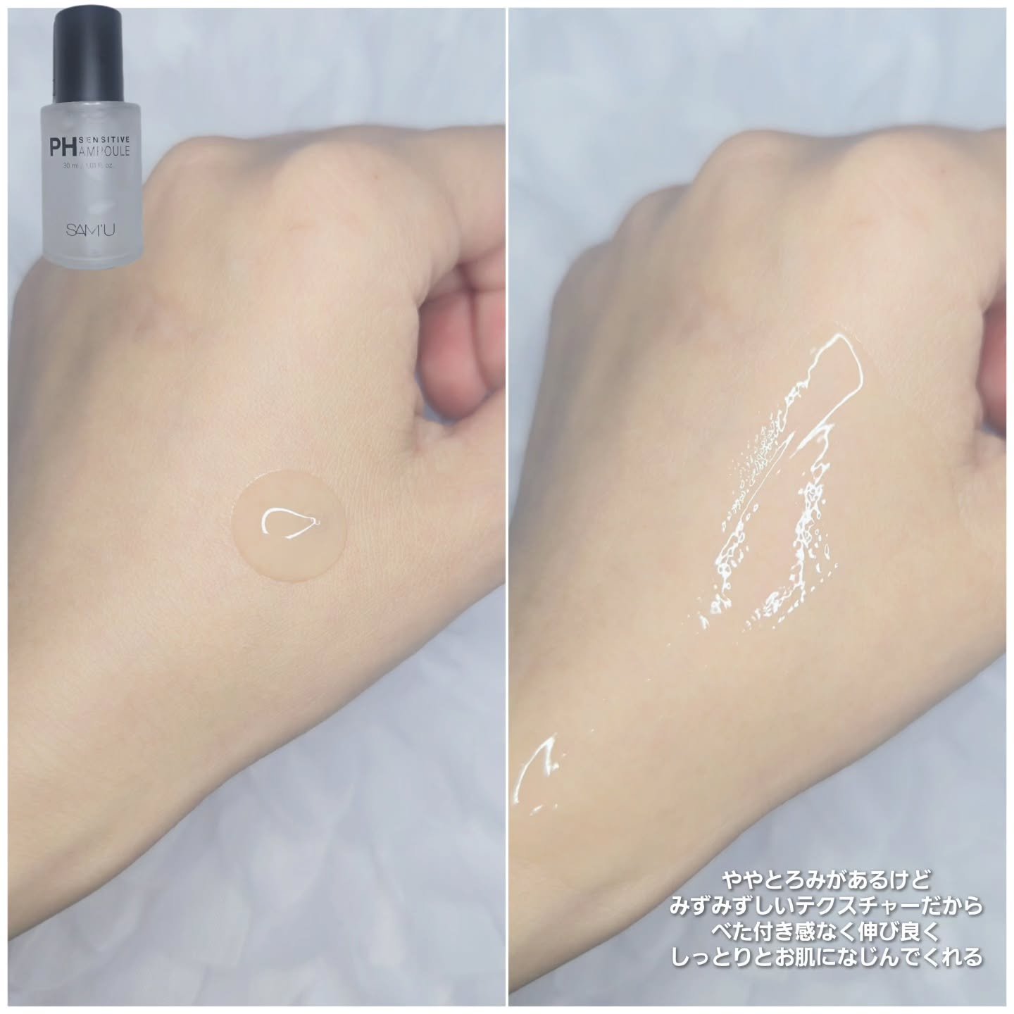 PHセンシティブアンプルナイアシンアミド・アデノシン含有で美白とシワ改善をサポートする高濃度アンプル✨6種類の肌荒れケアのエキス成分がたっぷり含まれてるから敏感肌もニキビ肌も負担なく使用できるみたい!とろみのある肌馴染みのいいテクスチャーで軽...
