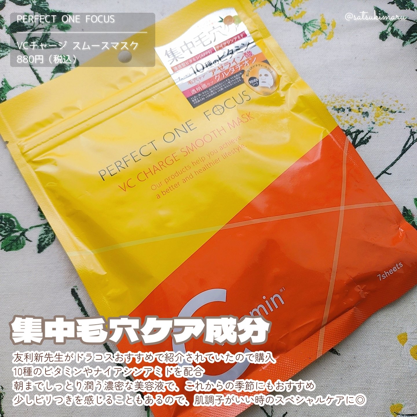 大人気クレンジングバームのシートマスク🍋❤︎🏷️PERFECTONEFOCUS/VCチャージスムースマスク7枚入りのシートマスク。思っていたよりも美容液がひたひたで保湿力◎ビタミンたっぷりで毛穴ケアに特化したアイテム。たった5分で完了できるの...