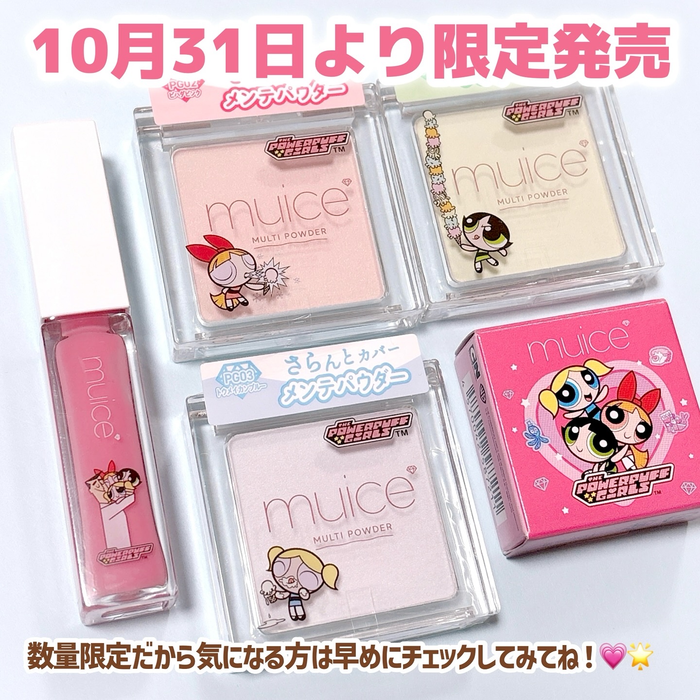 「muice(ミュアイス)」×「パワーパフガールズ」の限定コラボアイテムが登場💗⚜️muiceスフレdeチークPG01ピンクチェリーボムスポットメンテパウダーPG01オサエテミント/PG02ビハダピンク/PG03トウメイカンブルーちゅるリップ...