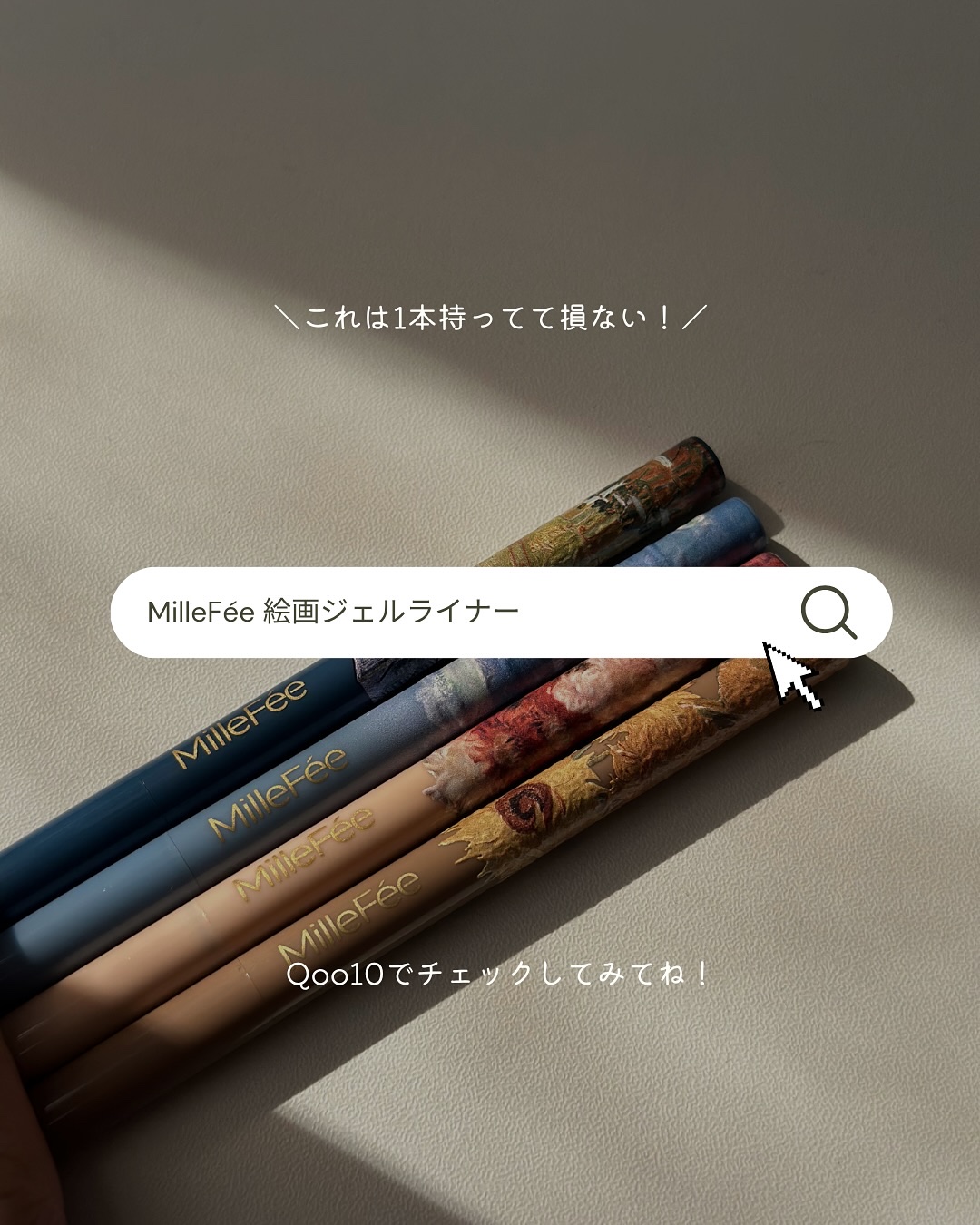 ...ミルフィーの絵画シリーズに新作のジェルアイライナーが登場🖼1.25mmの極細楕円芯で描き心地なめらか◎ジェルライナーでここまで繊細なラインが描けるとは…😳正直驚いた🙏密着力も高めで、涙・皮脂・汗擦れにも強いウォータープルーフ✨️ぼかした...