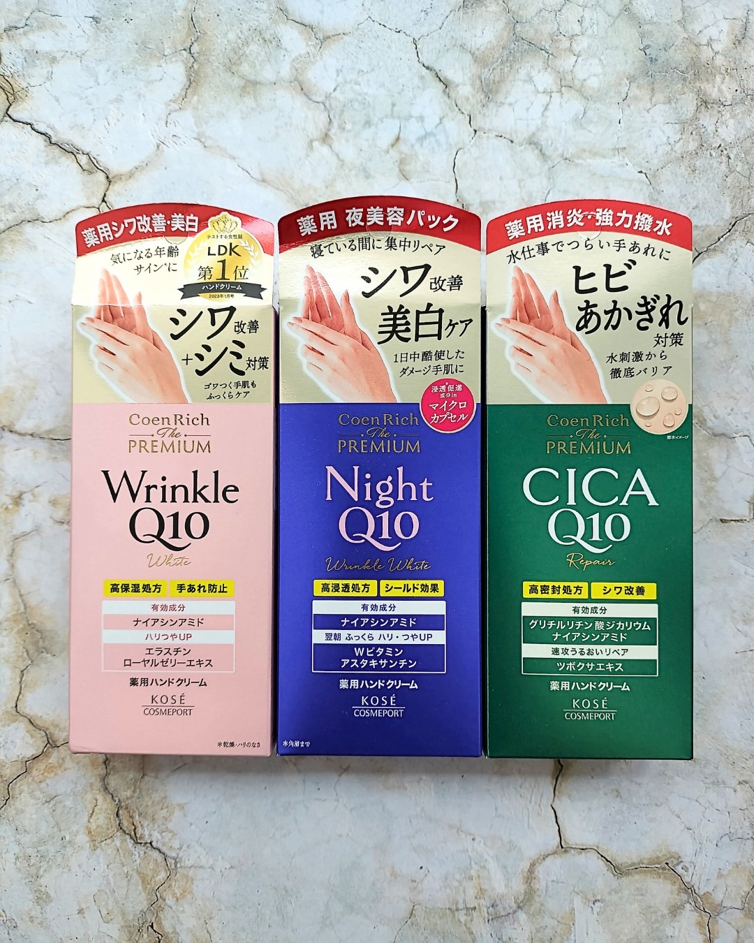 ・・/コエンリッチザプレミアム💚薬用CICAリペアハンドクリームN💙薬用リンクルナイト ハンドクリーム🩷薬用リンクルホワイトハンドクリーム↓Instagram@kosecosmeport_official\・・年齢サインは顔だけではなくて手に...