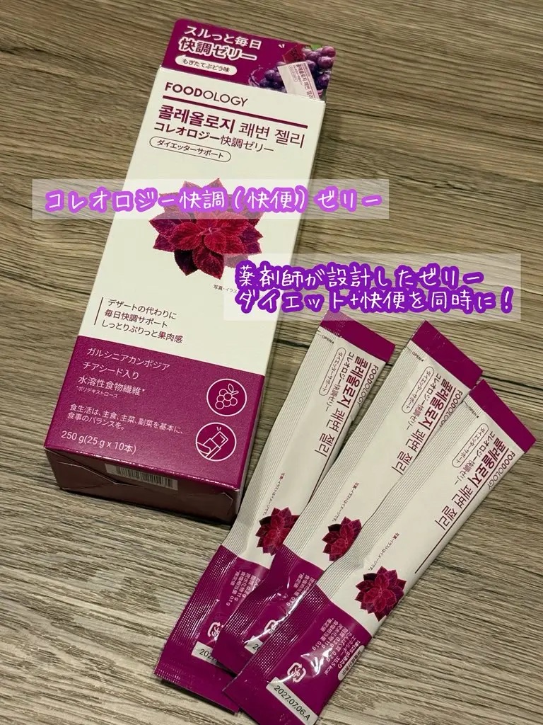 🌿💛最近SNSでも話題!💛🌿FOODOLOGYのコレオロジーゼリーシリーズで腸活はじめたよ✨カットゼリーは、プチプチとしたチアシードが入っているザクロ味のゼリー✨1日1回、昼食後に🍽️快調(快便)ゼリーは、プチプチとしたチアシードが入っている...