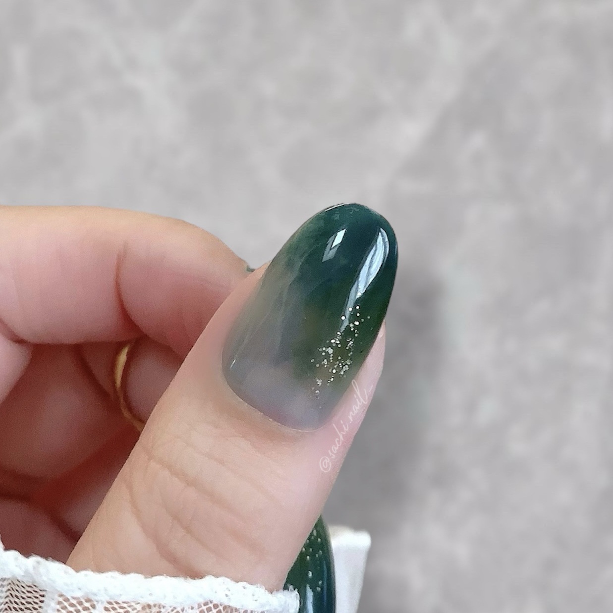 ワンカラーでも指ごとに色を変えるだけでオシャレに見えます💕 画像のようにゴールドラインとストーンを少し足すだけで華やかさがアップ🥰 何度かご紹介したことのあるスポンジで作るグラデーションです✨ スポンジを使うことで境目が綺麗に馴染んでくれます💕 アルミホイルの上でブラウンとトップコートを1:1くらいで混ぜたものを、トップコートのハケに取って3箇所に塗るだけ👌 事前に混ぜたものを塗ることで、爪の上でぼかすより簡単に出来ます💕 ベースカラーが乾く前に点置きしてぼかすことで綺麗にぼかせます✨ スピードが大事なので、使うポリッシュのキャップは全て開けておきましょう😊 天然石のラインはガタガタの方がより天然石っぽく見えるので、ラインを描くのが苦手な方でも大丈夫🙆♀️ 難しそうに見えて、やってみると意外と簡単に出来ます♡