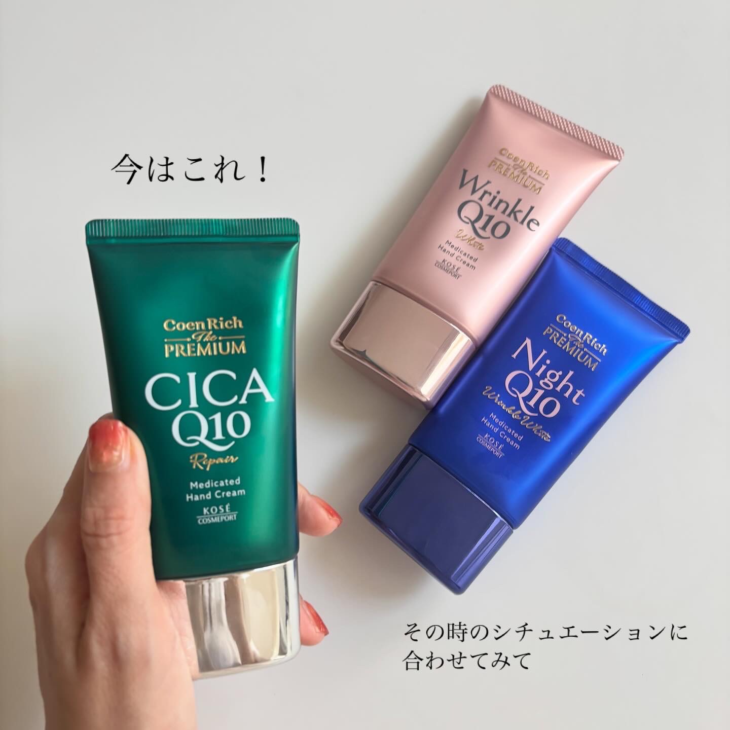 ・・/コエンリッチザプレミアム💚薬用CICAリペアハンドクリームN💙薬用リンクルナイト ハンドクリーム🩷薬用リンクルホワイトハンドクリーム↓Instagram@kosecosmeport_official\・・年齢サインは顔だけではなくて手に...