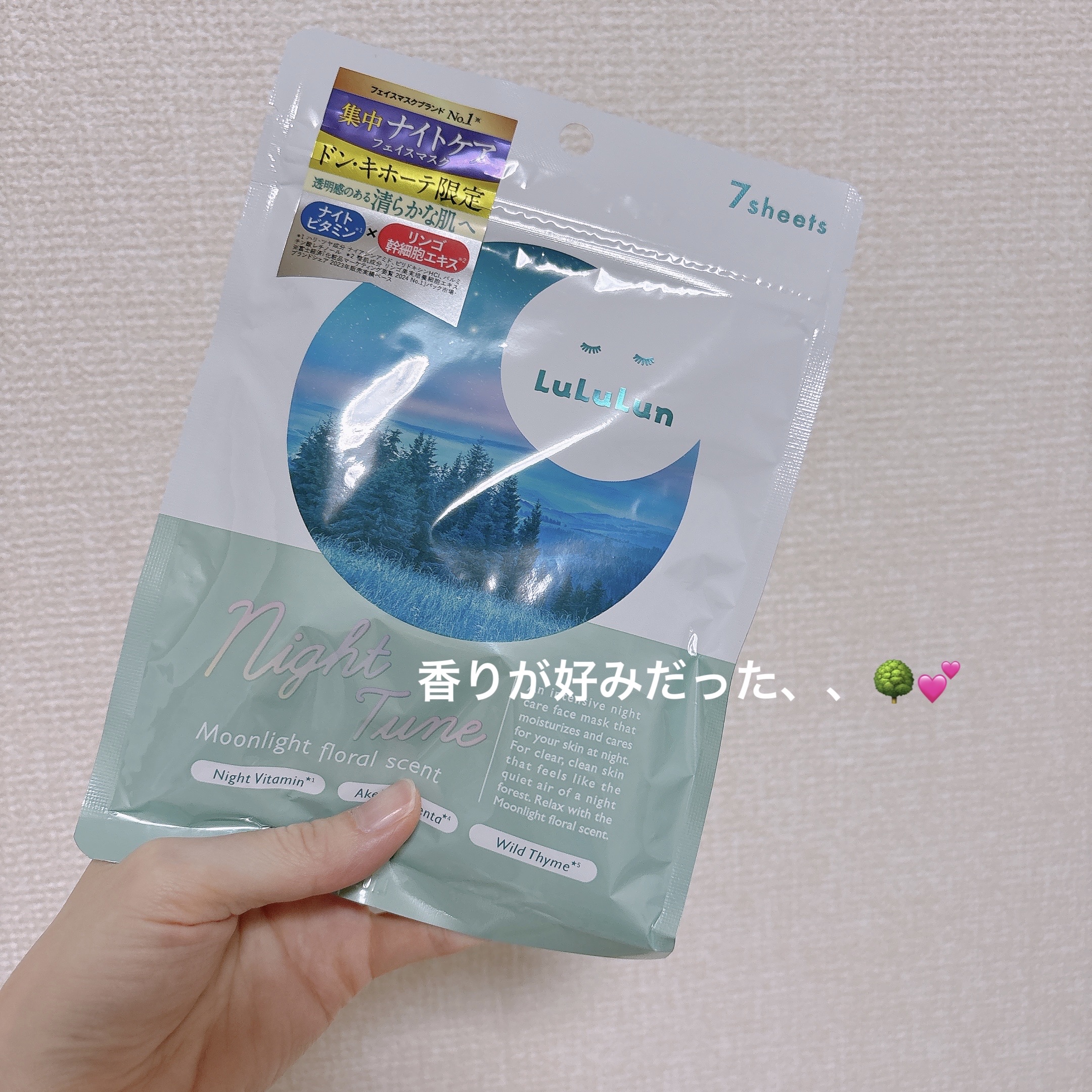 美肌の秘訣は睡眠!?ドン・キホーテ系列店限定のルルルン!◻️LululunナイトチューンマスクForest¥770(税込)現代人の睡眠不足に着目した集中ナイトケアのフェイスマスクがドンキ限定で手に入るよ!夜に使うことで効果を発揮するナイトチュ...