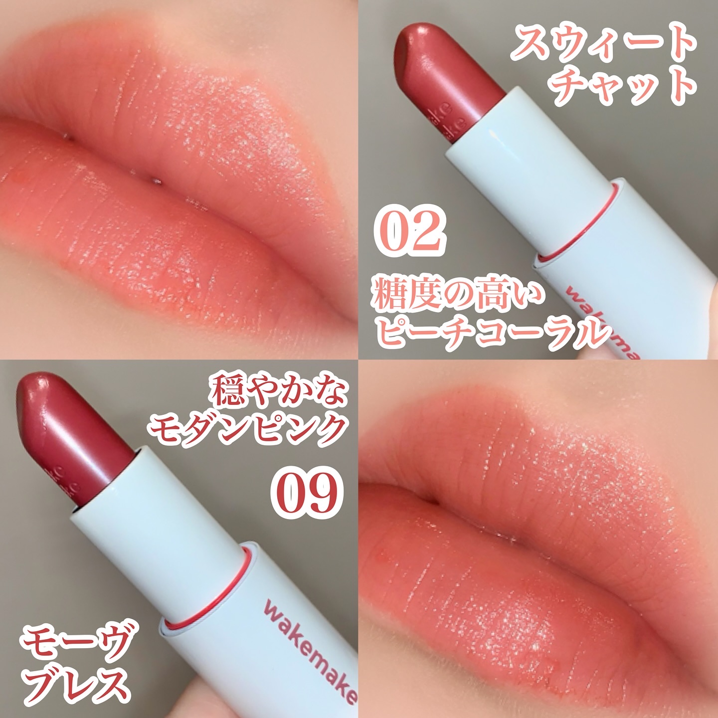 wakemakeHEALTHYGLOWBALMSTICK02スウィートチャット09モーヴブレスwakemakeは4月末からリブランディングしてロゴが小文字に!パケも可愛い🤍Amazon・全国バラショ(一部店舗除く)で販売中!唇がキレイに見える...