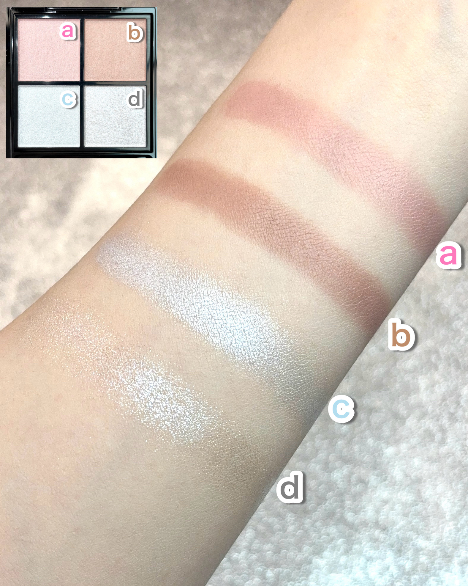 マット・ラメ&パールの異なる質感でアイシャドウ、ハイライト、ノーズシャドウとマルチに使えます✨ カラー展開はニュートラルブラウン系、ブラウンオレンジ系、ブラウンピンク系の3パターンです!! 発色がどれも程よくて使いやすかったです!! アイブロウにラメやパールを付けるのが初めての方でも程よい輝きなので使いやすいと思います! 1個持ってるとすごく便利な商品だと思いました! マルチに使えるので、旅行の時など荷物を減らしたい時に助かります!!