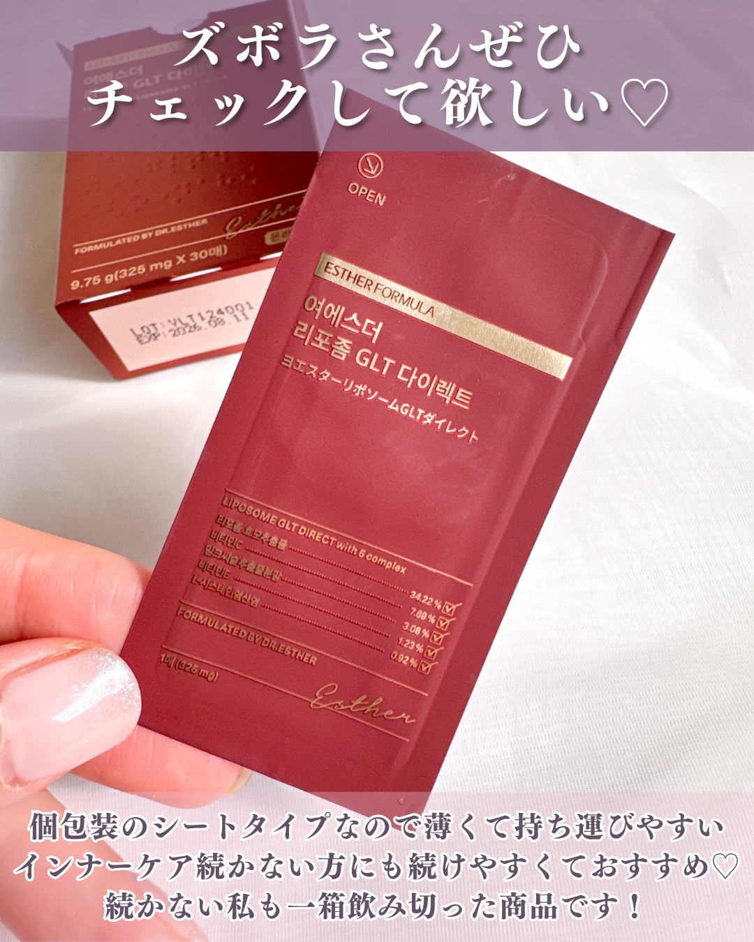 ESTHERFORMULAリポソームGLTダイレクト韓国国内にてシリーズ累計5億枚突破の人気シリーズ♥️"貼るグルタチオン"としてSNSでも話題になっています🌸手軽に取り入れられるので気に入っています🫶🏻薄いフィルムタイプ🫧上あごにピタッと密...