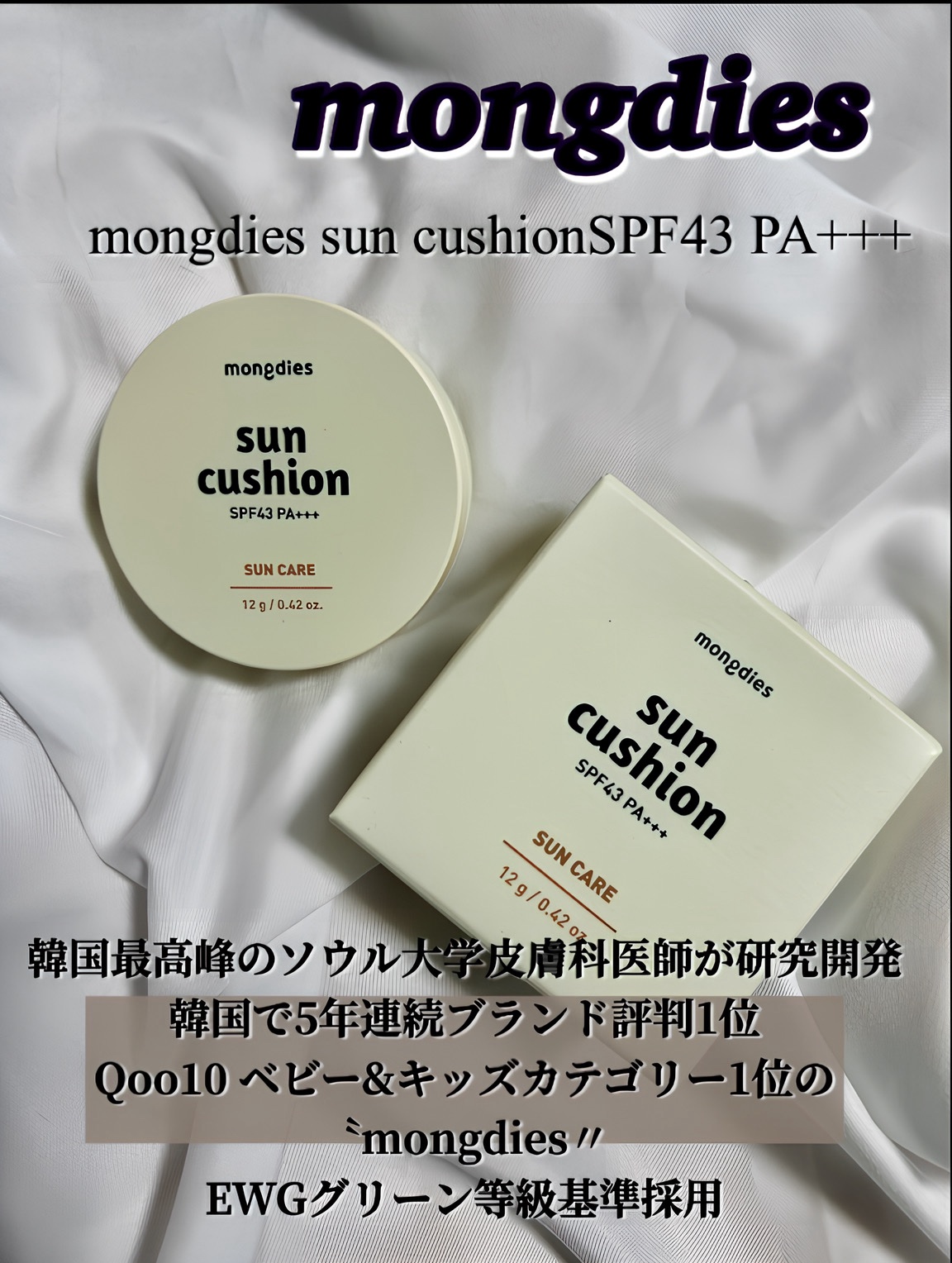 韓国No.1の赤ちゃんスキンケアブランド👩🍼モンディエス紫外線が気になる季節にぴったりのおすすめベビースキンケアモンディエス日焼け止めクッション100%ノンケミカルSPF43PA+++自然由来成分使用ヴィーガン処方の水分UVク...